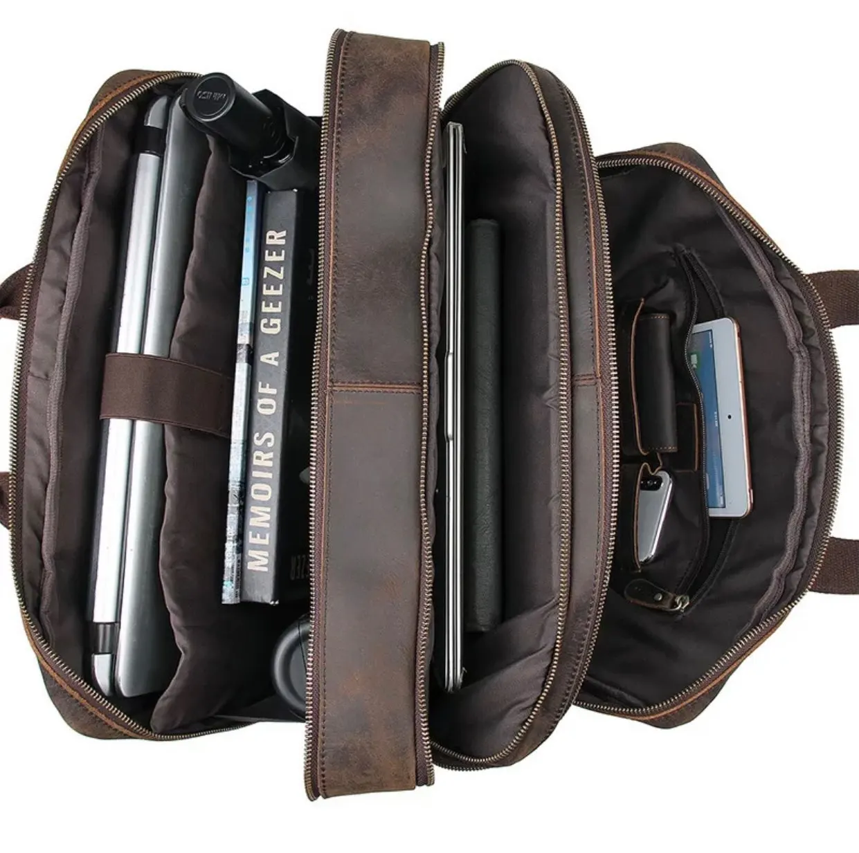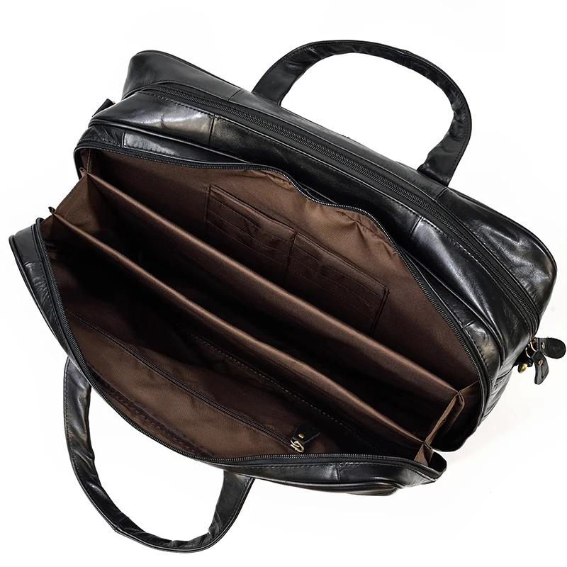 Многофункциональный мужской портфель из натуральной кожи Crazy horse, деловая сумка для ноутбука 17 дюймов, винтажная Мужская большая сумка через плечо, дорожный вещевой материал