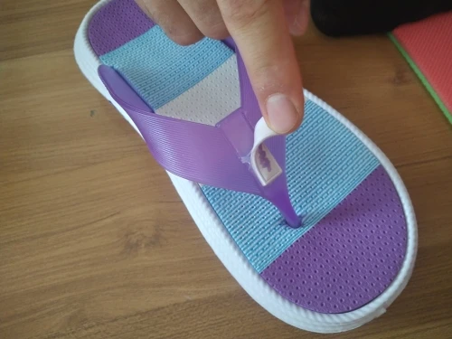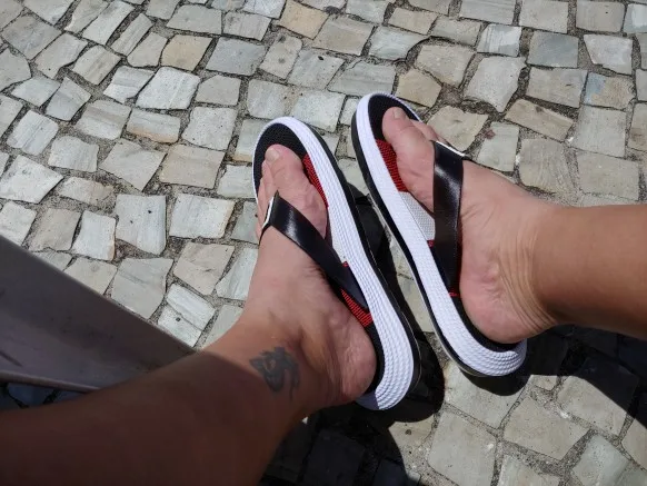 В целом все хорошо. Подошва упругая, не продавливается под весом. Единственное, начало перемычки сделано далековато, по-этому получается довольно большой зазор между пальцами и началом подошвы. Не критично.