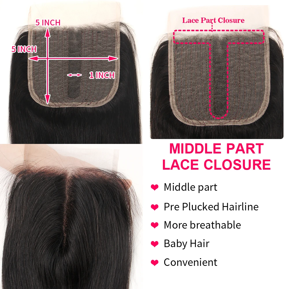Прямые пучки волос с закрытием, бразильские волосы с закрытием 4x4, человеческие волосы без Реми, пряди закрытием