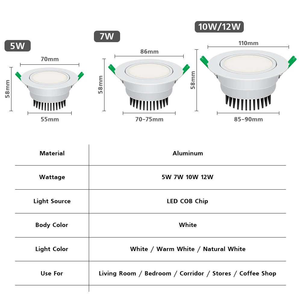 Приглушаемый Светодиодный Светильник направленного света, потолочный Точечный светильник с COB матрицей, 110 В, 5 Вт, 7 Вт, 10 Вт, 85-220 В, встраивасветильник Потолочный Светильник направленного света, светильник нее освещение