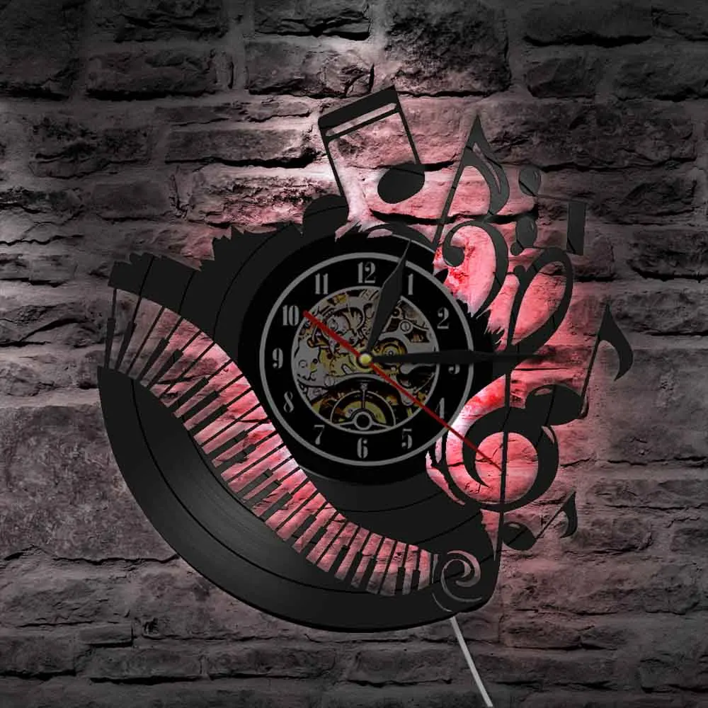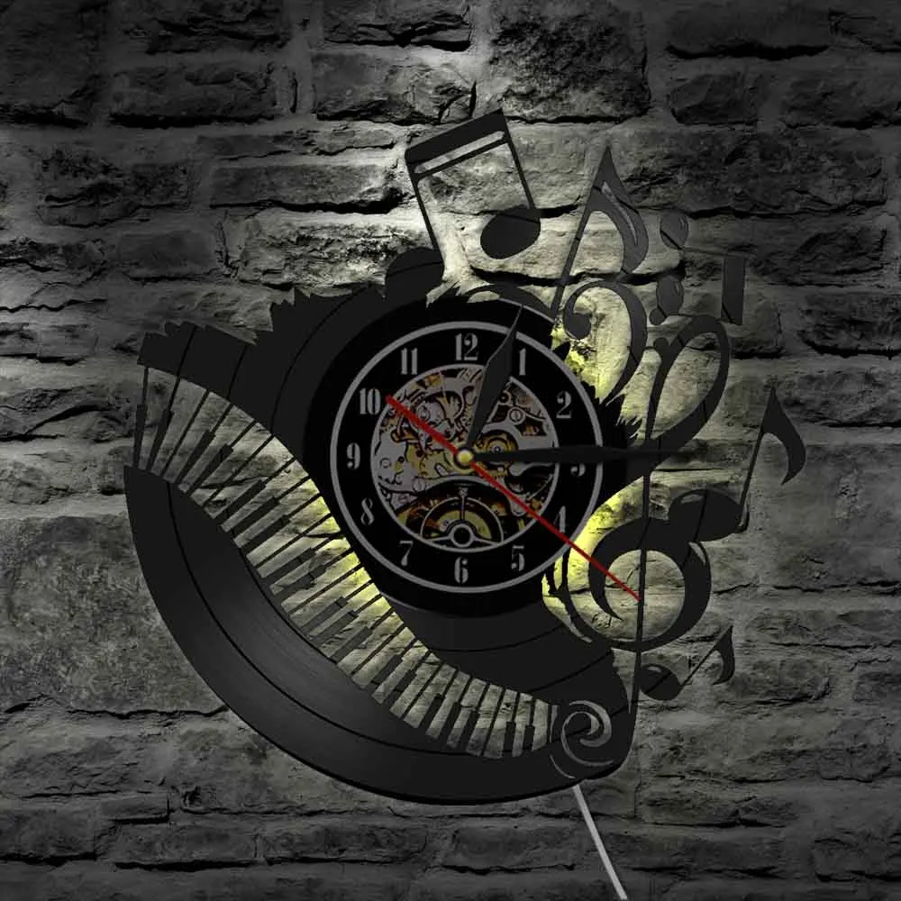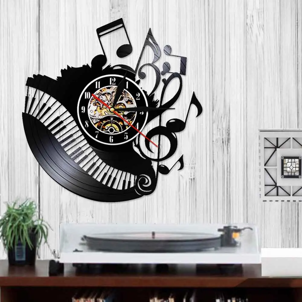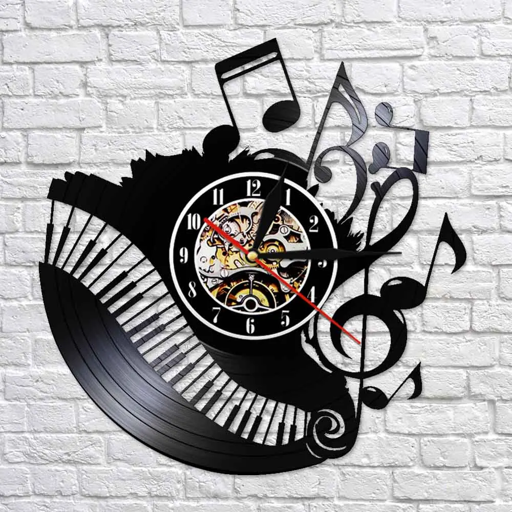 Виниловые часы для записи нот, пианино, комнаты, записи, учительский писатель, индивидуальный знак, настенные художественные виниловые часы, я люблю музыку, часы