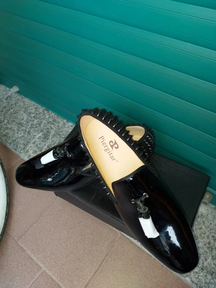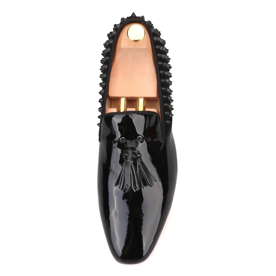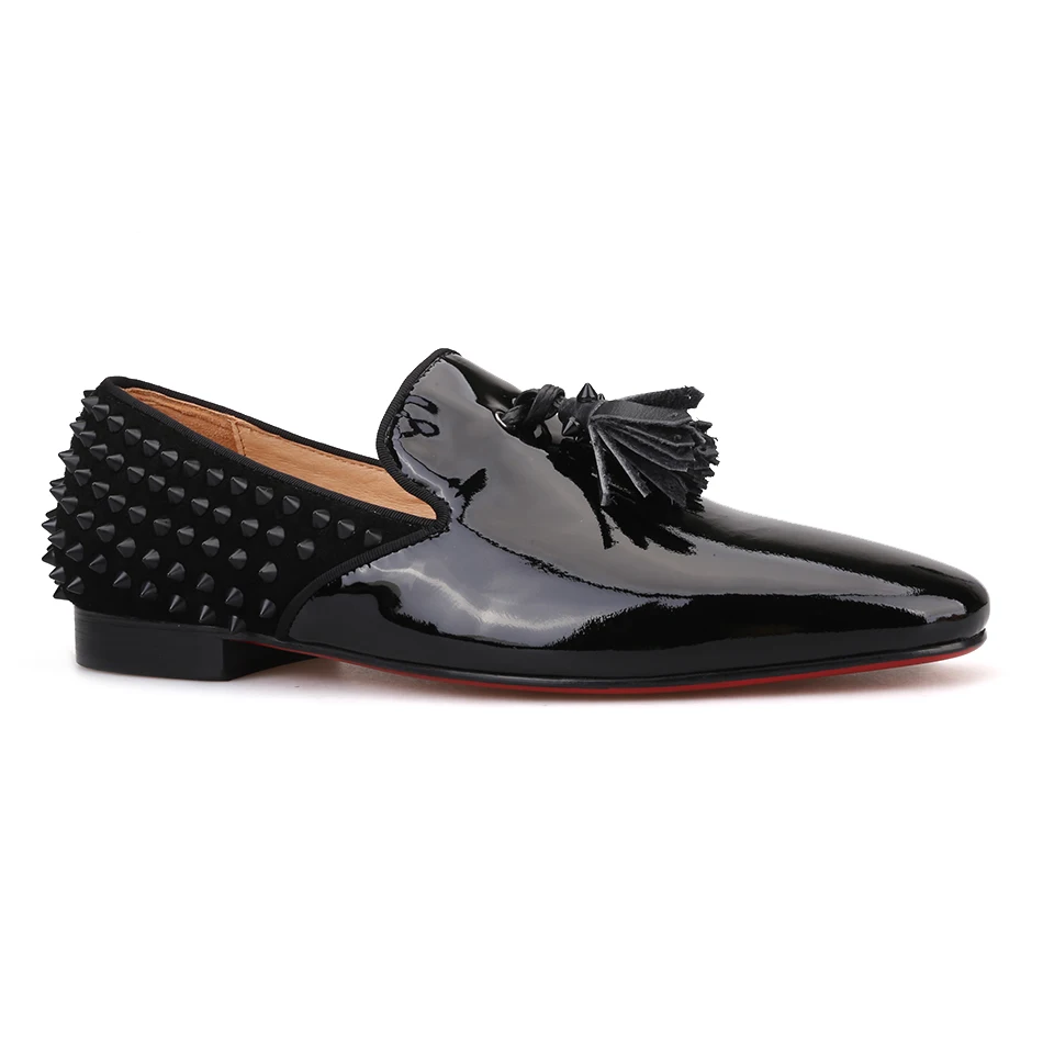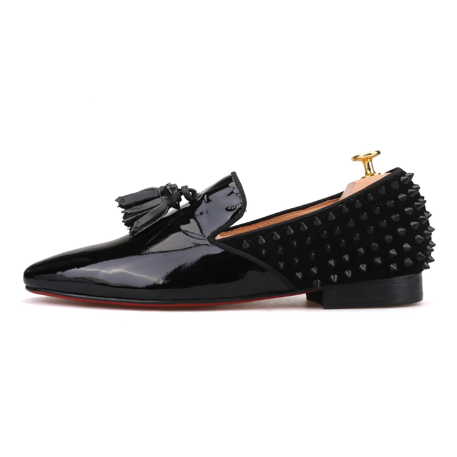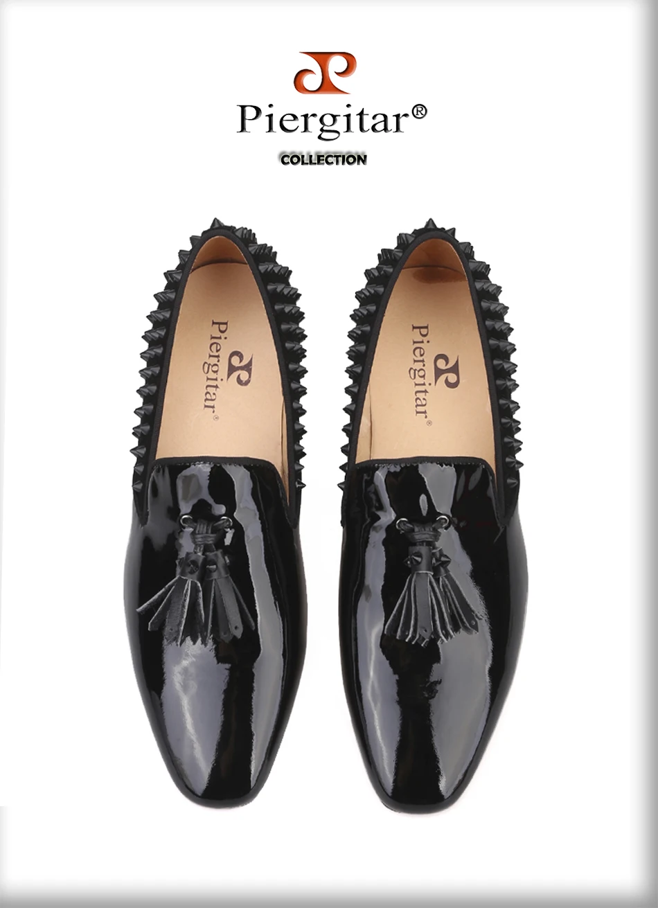 Мужские лакированные туфли Piergitar ручной работы, черные модные мужские лоферы с красной подошвой и бахромой, мужские дизайнерские туфли с шипами на плоской подошве, модель 2020