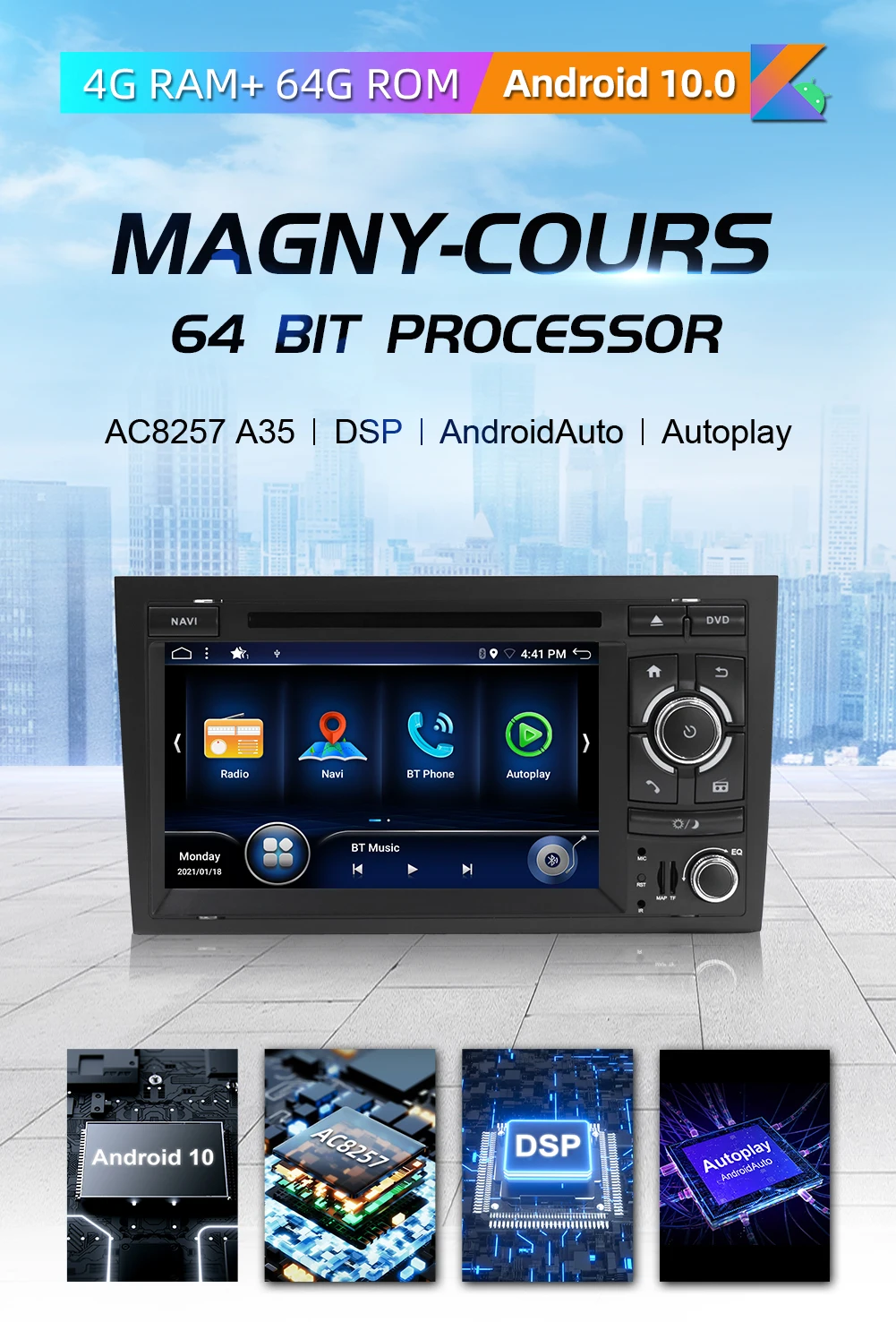 4RB 64 Гб PX6 DSP Автомобильный мультимедийный плеер Android 10,0 2 din автомобильный DVD-плеер для Audi A4 B6 B7 S4 автомобильное радио gps Навигация стерео головное устройство
