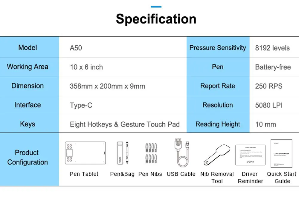 Графический планшет Veikk A50 для онлайн-обучения и обучения с 8192 уровнями пассивной ручки Android Поддерживаемые цифровые планшеты для рисования