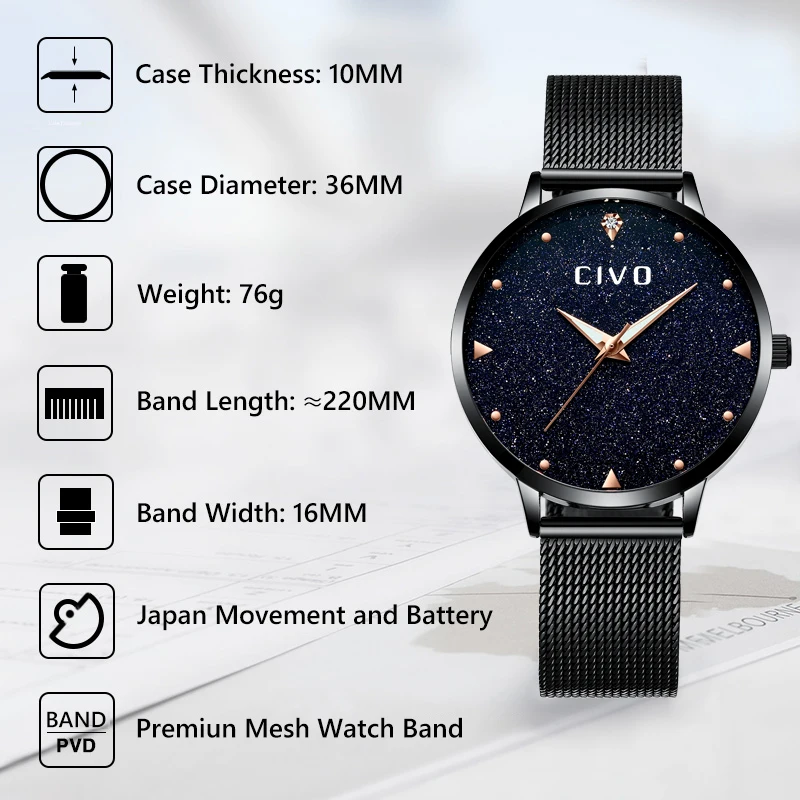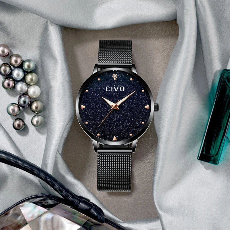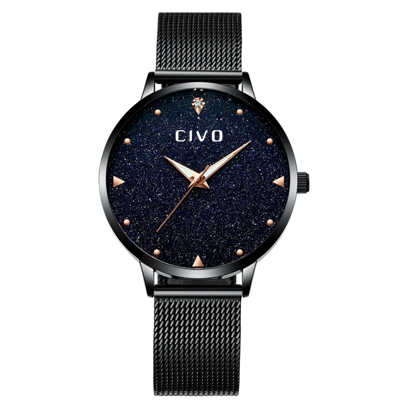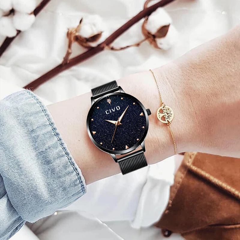 Часы женские, аналоговые, водонепроницаемые, черные