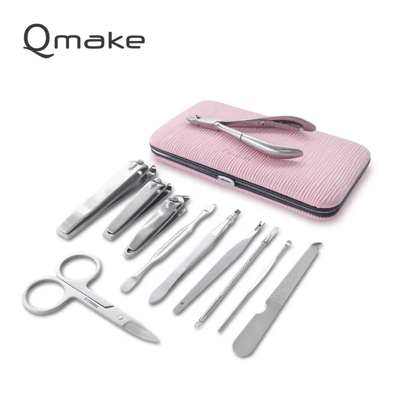 Qmake 11 шт . набор маникюрных инструментов для ногтей кусачки для ног ножницы пинцет педикюрный набор Профессиональный качественный чехол для путешествий