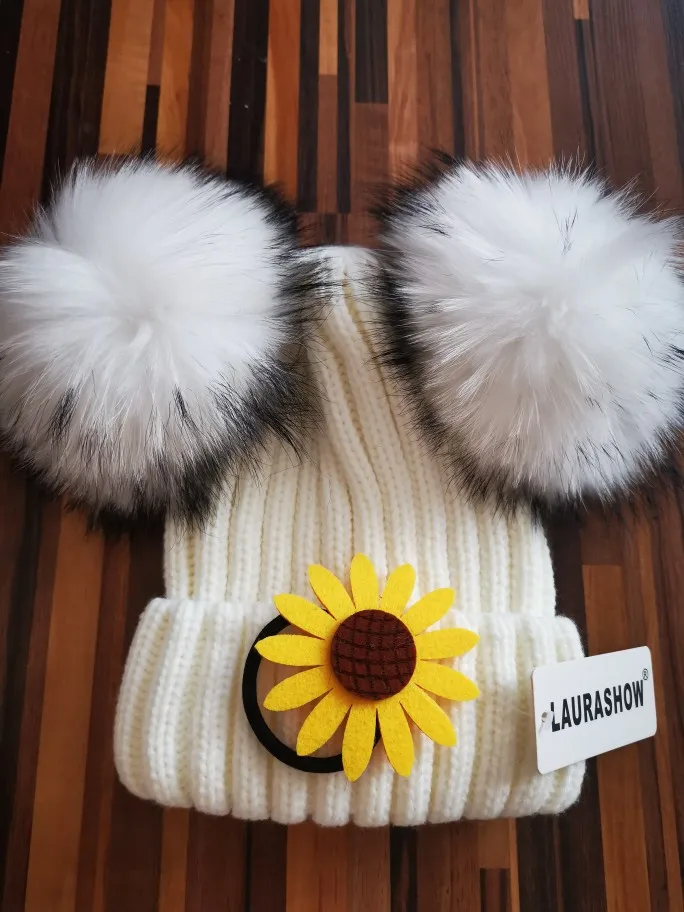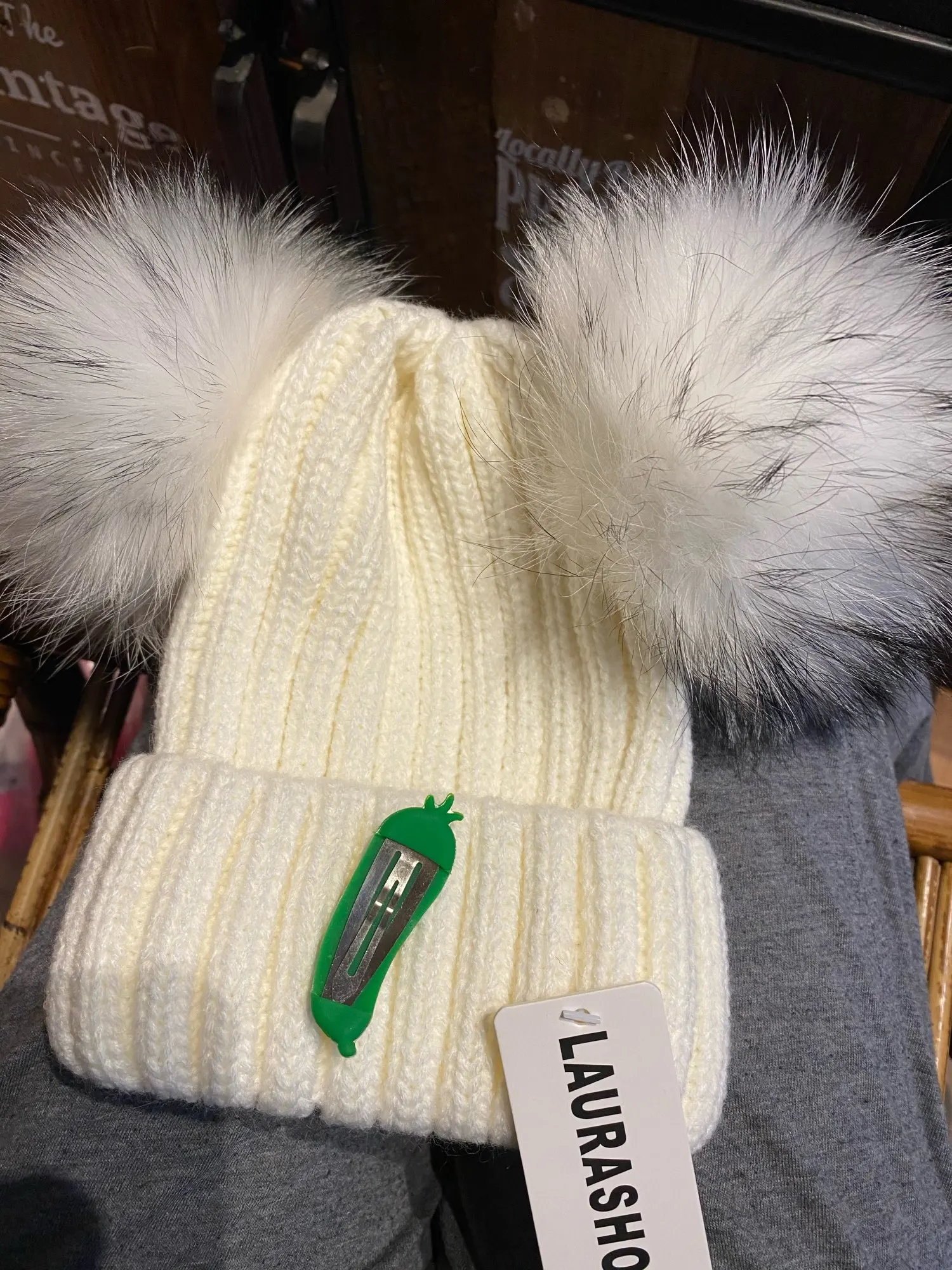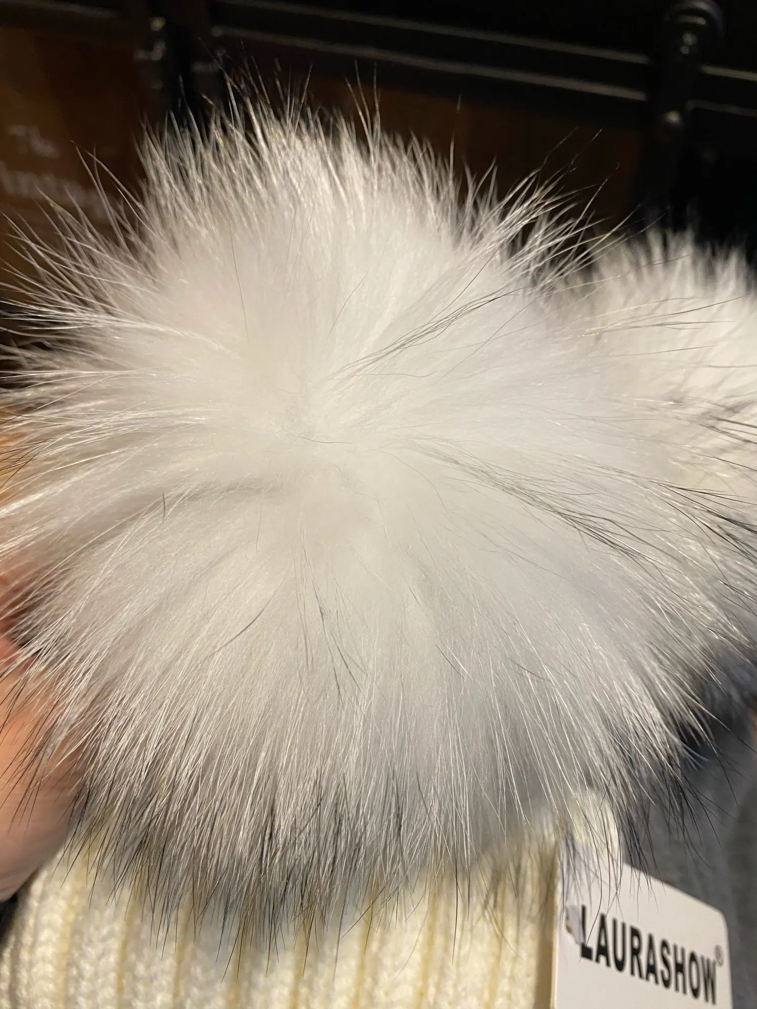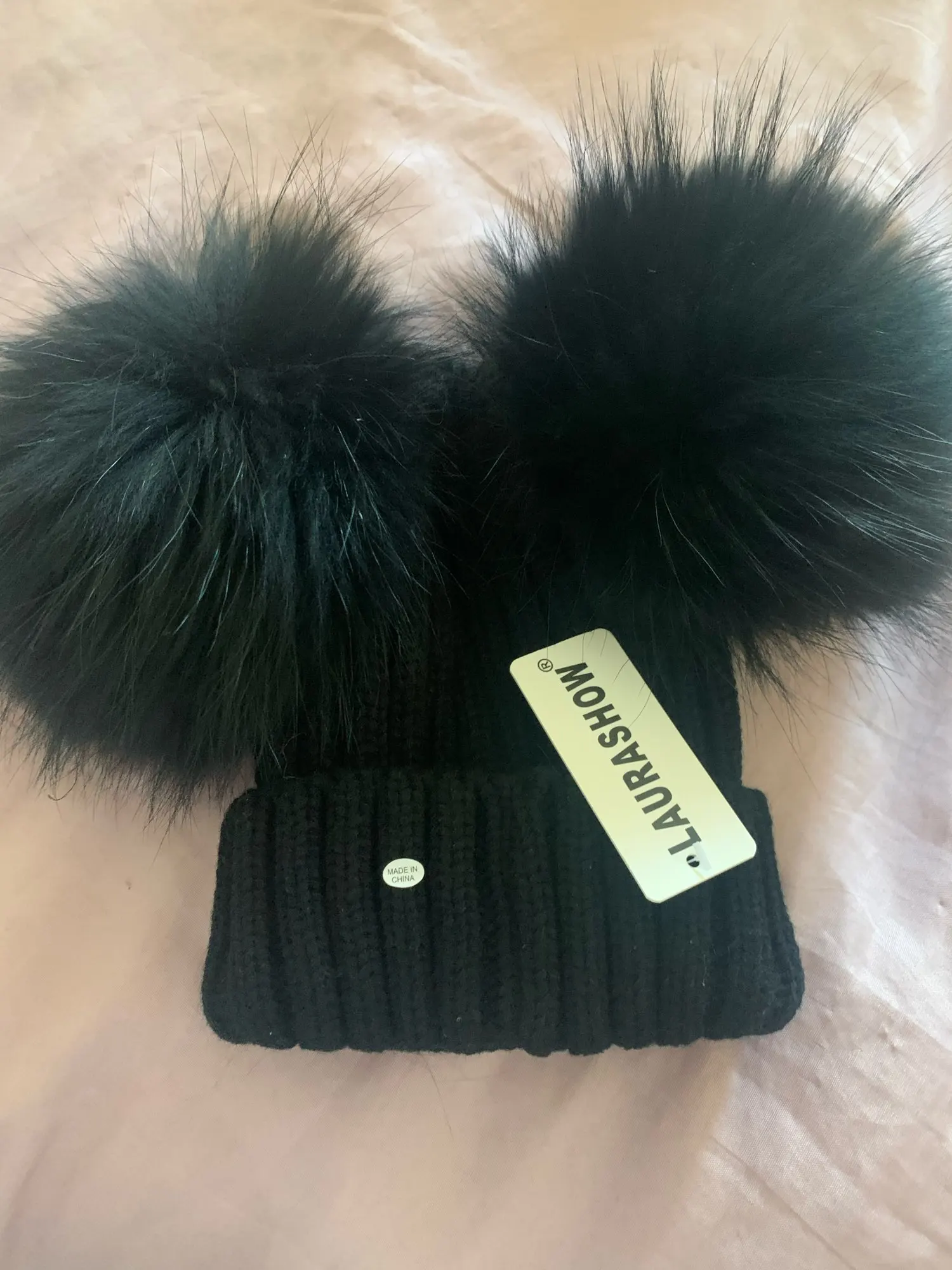 Шапка LAURASHOW для взрослых, зимняя, вязаная, двойной помпон из натурального меха, 16 см