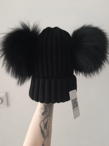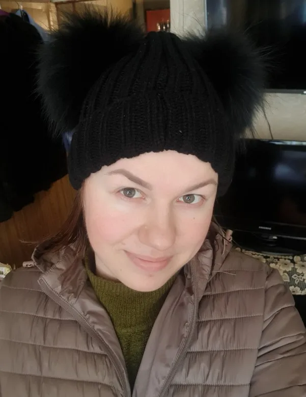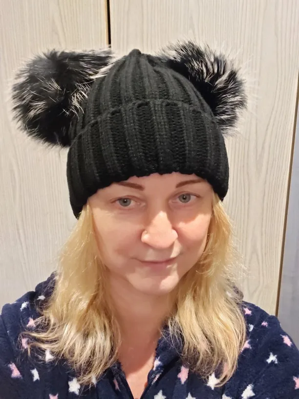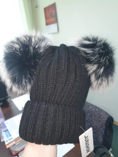 Абсолютно блестящий! Очень Высококачественная шапка с милыми помпонами. Хорошо упаковано