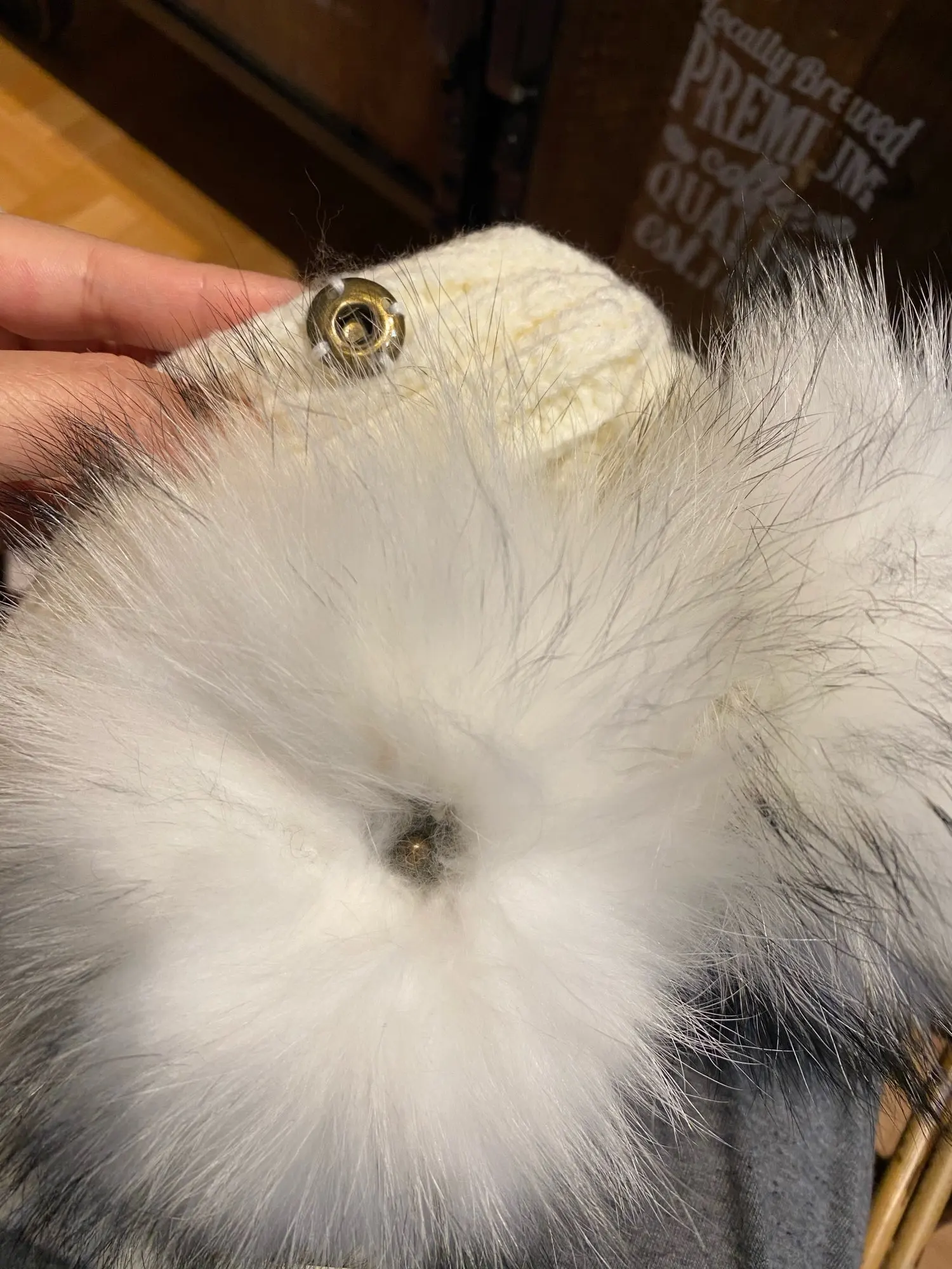 Получил шапочку в хорошем состоянии с воздушным карманом в упаковке. Я думаю, что это так, что помпон не будет плоским по прибытии. Обратитесь к продавцу, чтобы убедиться в этом. Я заказал его в белом цвете, и это больше кремового на самом деле. Помпоны мягкие и пушистые. Оба съемные. Продавец включил заколку для волос в подарок.