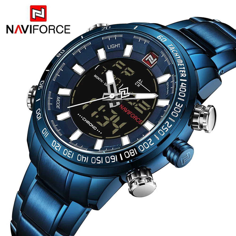 NAVIFORCE Роскошные Брендовые Часы мужские военные спортивные часы мужские Цифровые кварцевые часы полностью стальные водонепроницаемые наручные часы Relojes 2018