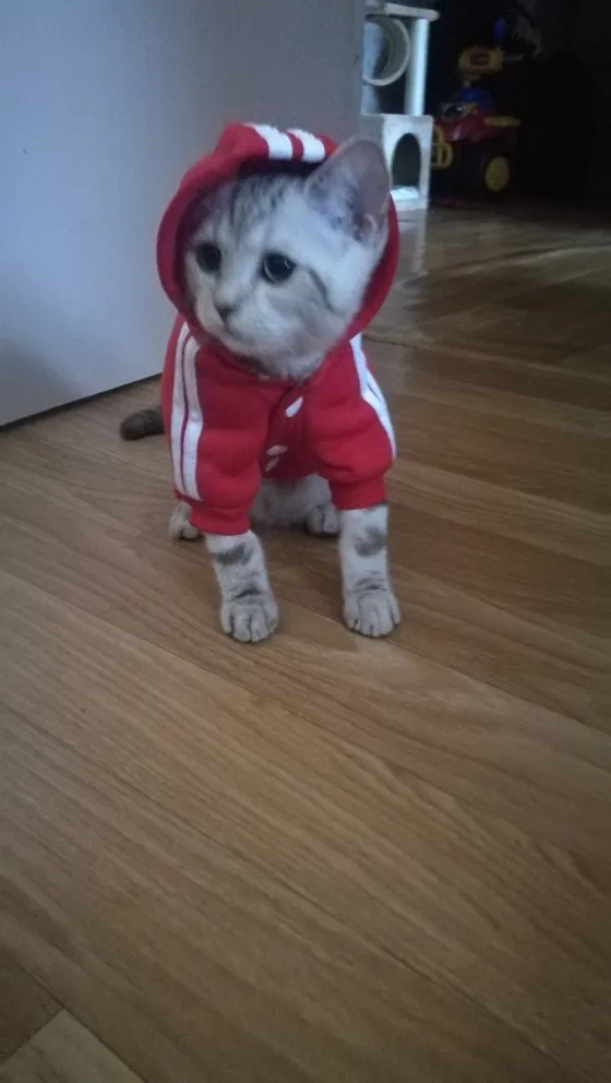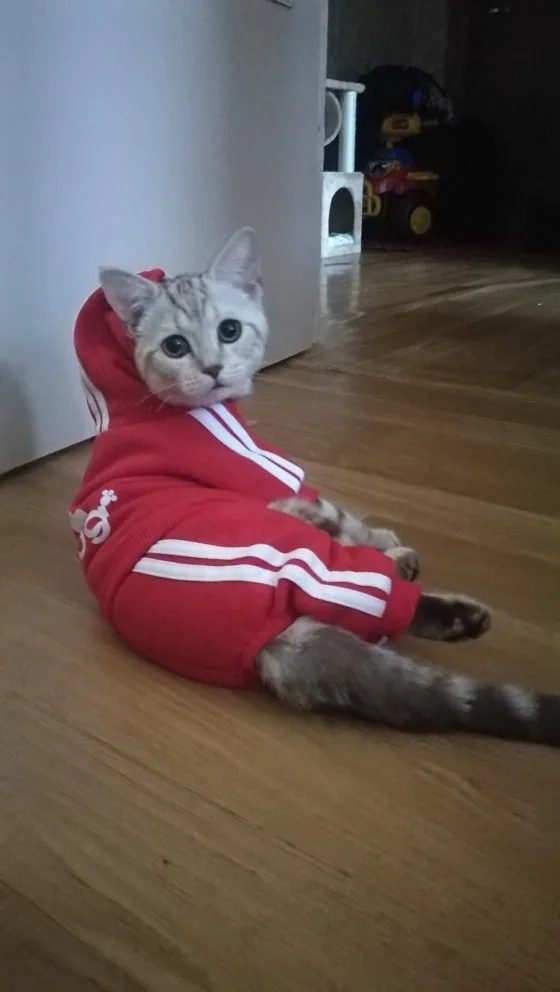 На нашумевшего кошку маловат костюмчик, а качество нориальное