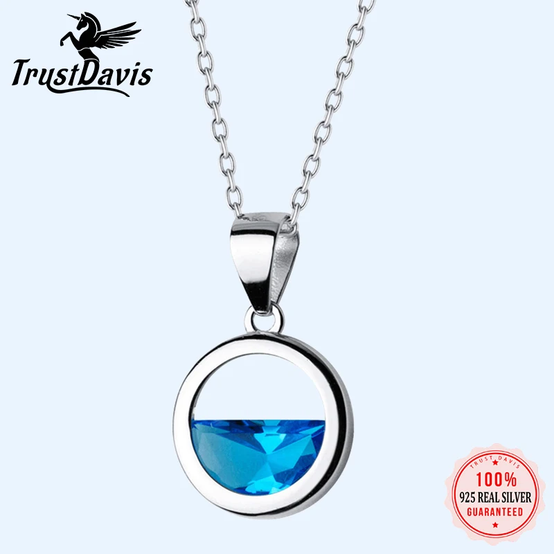 Женское серебро 100% пробы, с круглым синим кристаллом, 925 пробы, DS1173, короткое ожерелье с подвеской