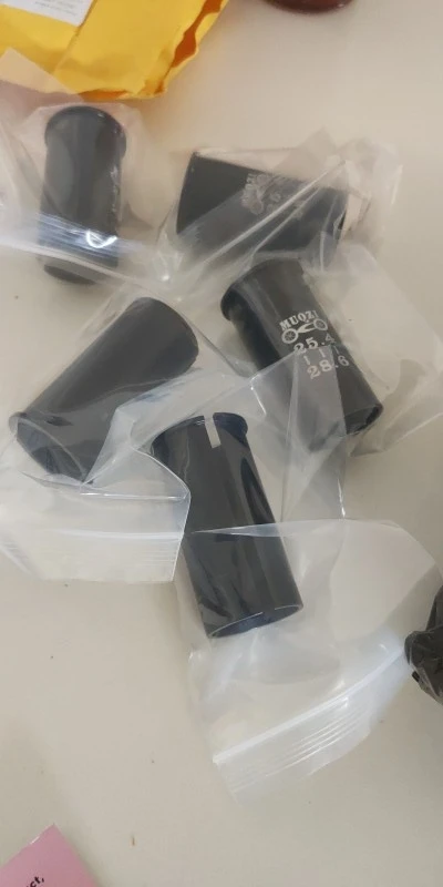 Товар пришла в сборе с другими посылками за 18 дней до Ставрополя, не ожидал, что так быстро. Завернуто было так себе, благо материал твердый, вряд ли что-то поломается. Представляет из себя алюминиевое кольцо которое вставляется в стык подседельной трубы и штыря, тем самым уплотняя место для фиксации, годная штука, когда имеешь дорогой штырь, но не хочешь покупать новый под свой диаметр. Жаль что не длинный, но и так я весьма доволен, он то и стоит не много.