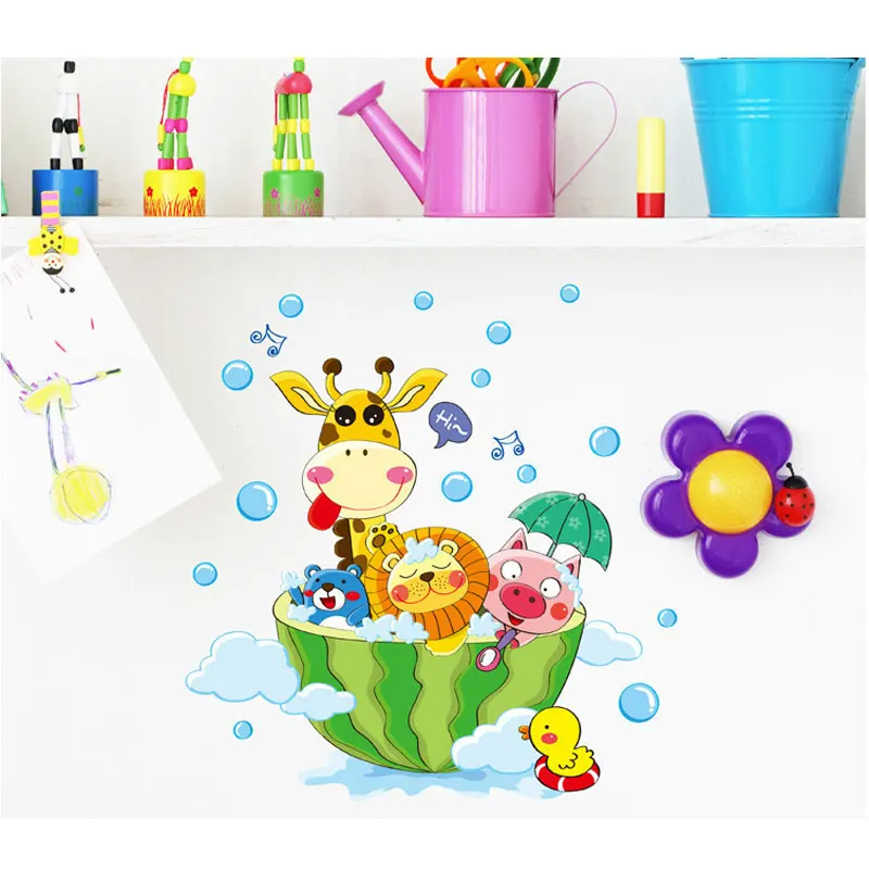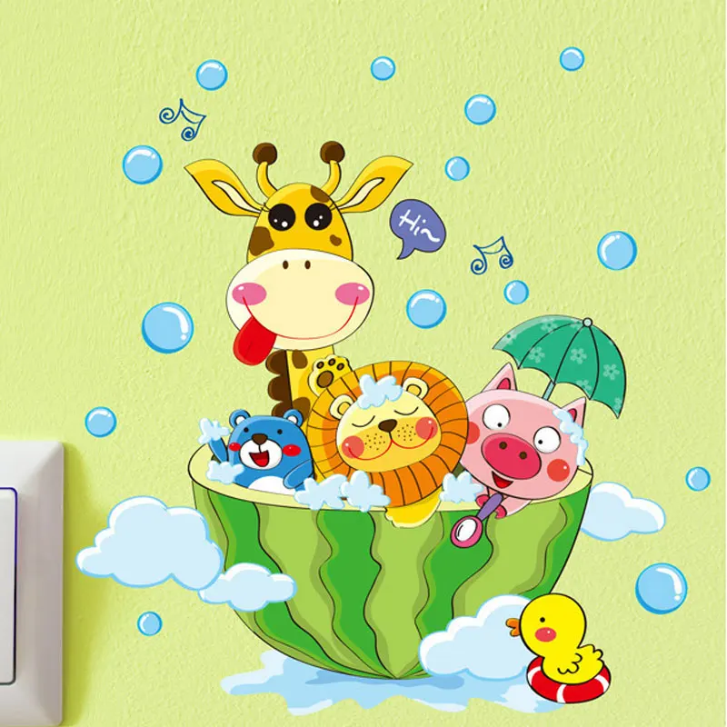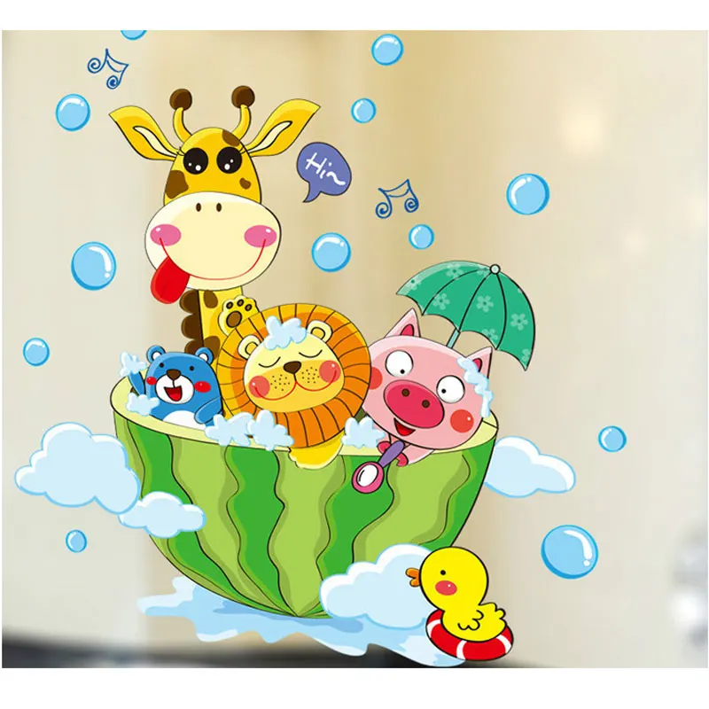 Милые животные в ванне, душе, наклейки на стену для ванной комнаты наклейки с пузырьками, для детской комнаты, украшение для дома, художественные наклейки, Декор