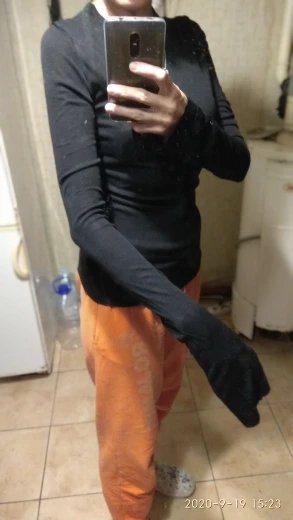 доставка 18 дней в Украину (Одесса). посылку объединили с другой и она пришла на новую почту. кофточка соответствует описанию и фото продавца. довольно тонкая, но просвечивает совсем немного. на фото под ней белый лиф и этого почти не видно. нашла бирку, но состав ткани не поняла. на 1 размер груди (объем под грудью 72 см) она в обтяжку, но не так уж, чтоб расходились швы. на большУю грудь думаю налезет с трудом и вряд-ли будет комфортно. рукава длинющие. нужно немного приподнимать, иначе смотрится как Пьеро)) длина самой кофточки отличная. наконец-то нашла что-то действительно на нормальный рост (мой 165). думаю будет хорошо и девушкам повыше. ниточки в концах швов немного торчали, но совсем чуть-чуть. пошив идеальный, никаких кривых швов. лейбу с названием бренда отпорола, так как она белая на черной кофте, хотя её абсолютно не видно. короче на ближайшей распродаже закажу еще в другом цвете. рекомендую к приобретению однозначно.