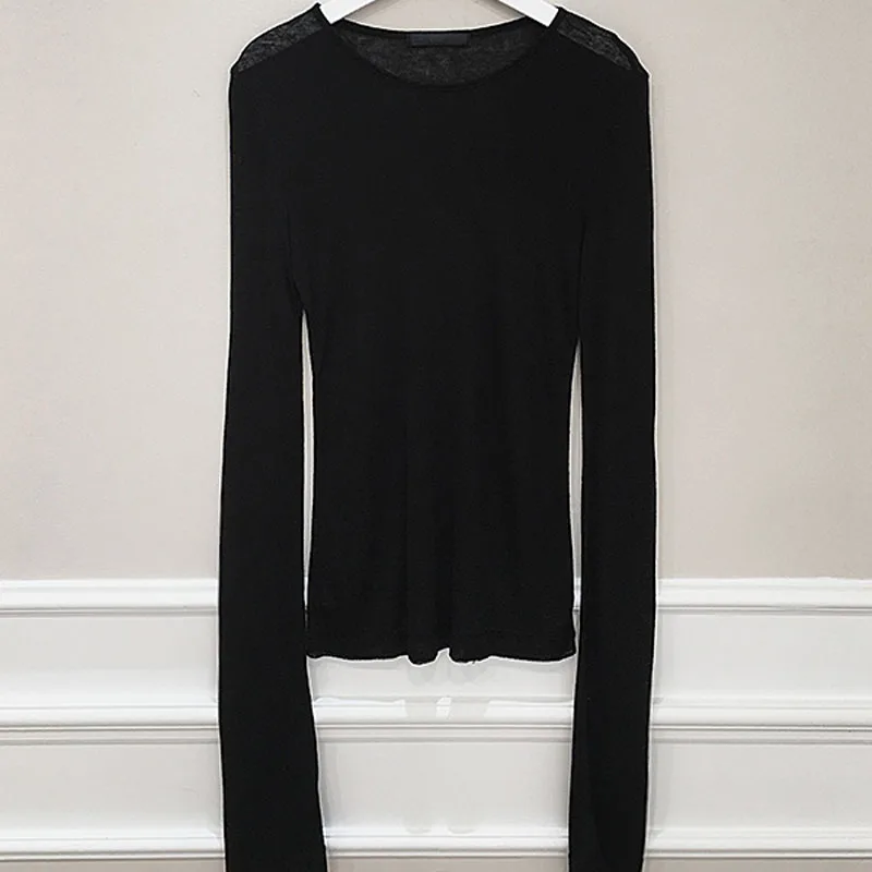 Футболка женская эластичная, с длинным рукавом, в Корейском стиле