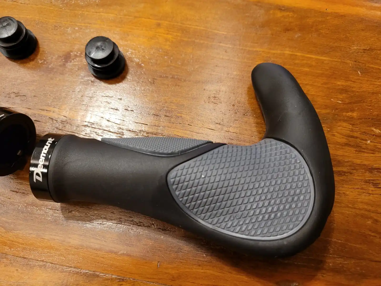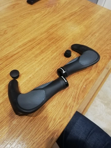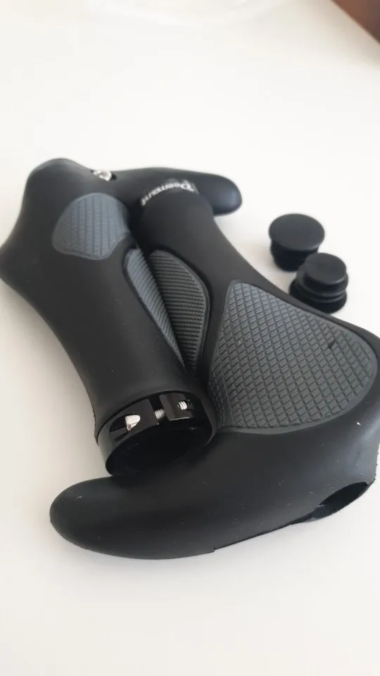 Швидка доставка - прийшли в Україну на Нову Пошту рівно за два тижні, упаковано надійно. Зручне і надійне кріплення грипсів, велика ділянка куди класти долоню. Маленькі ручки по боках дають реальну можливість зняти втому з руки при довгих поїздках. Гріпси з неслизького матеріалу - навіть без велорукавиць користуватись ними доволі приємно. Заглушки щоб закрити отвори з кінців грипс в комплекті, сподіваюсь, що випадати вони не будуть, інакше краще було б покласти ще пару запасних.