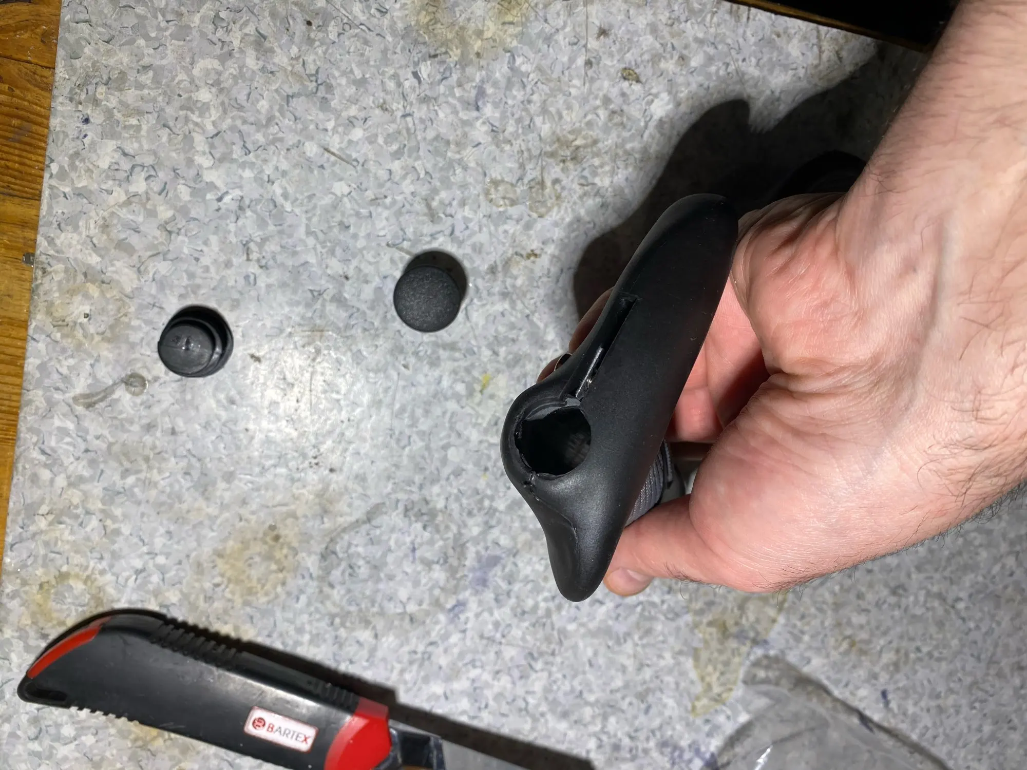 Доставка быстрая. Ручки по хвату очень понравились в сравнении с родными, ухват отличный, наружный винт отлично закрывает грипсу! Я доволен!