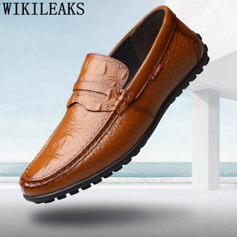 Мужские туфли без шнуровки Элитный бренд повседневная обувь мужские лоферы под крокодиловую кожу из натуральной кожи мужская обувь; Tenis Masculino; Большие размеры; Мужские мокасины; Zapatos