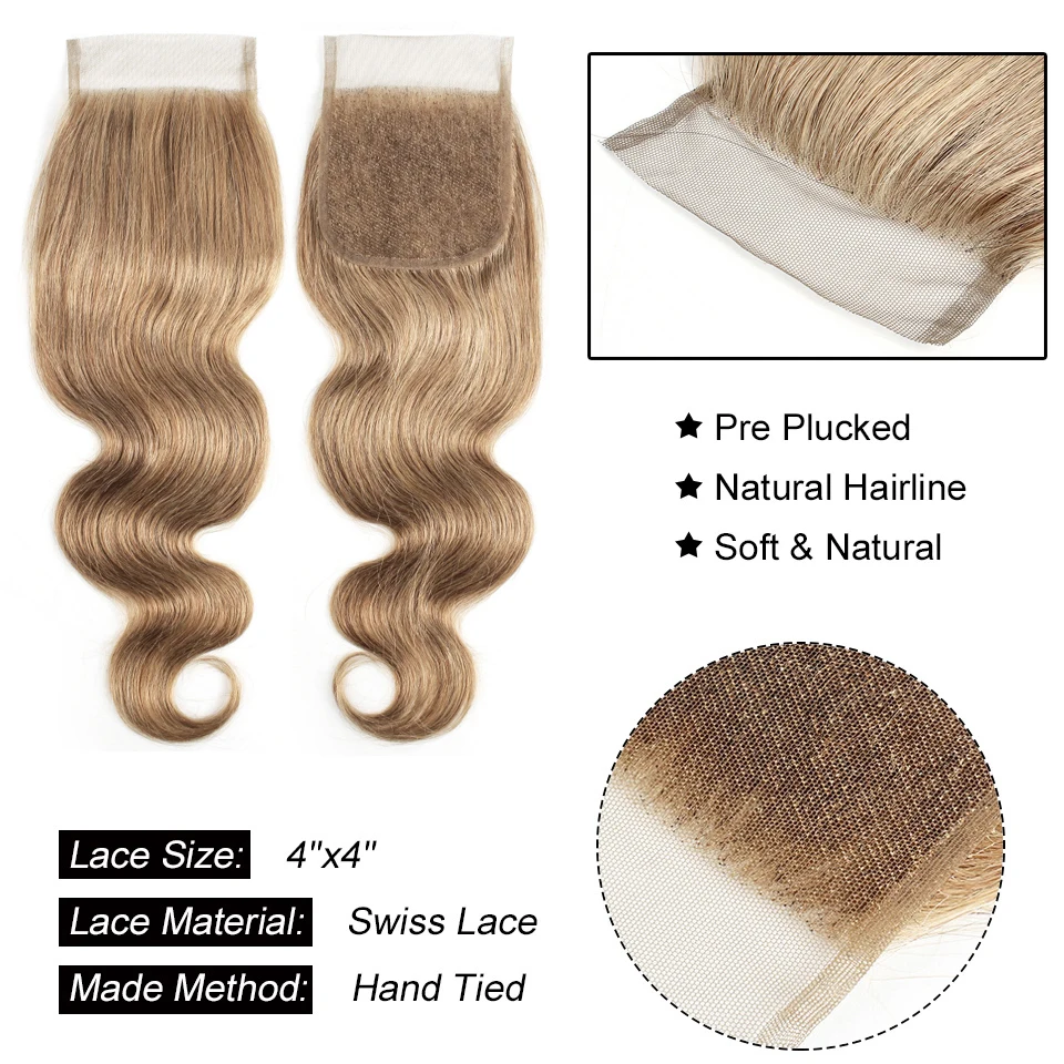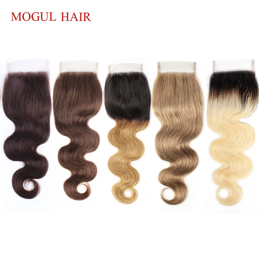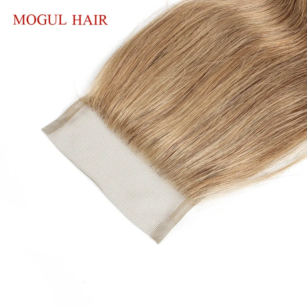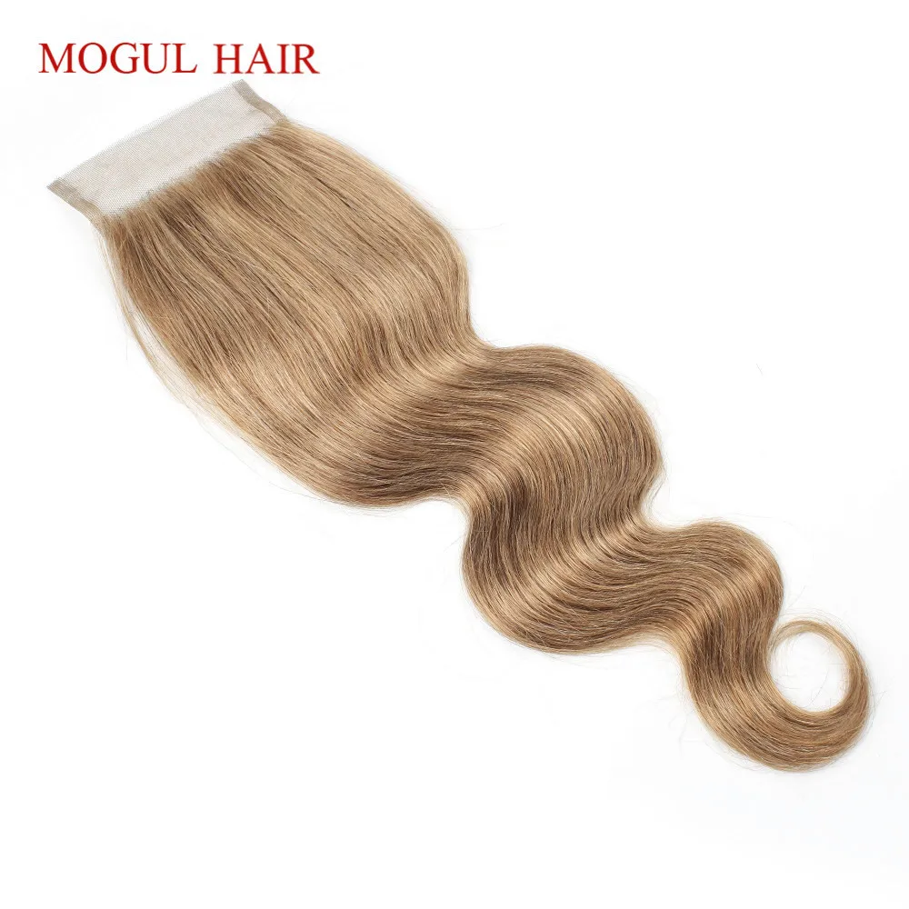 MOGUL цвет волос 8 пепепельный светлый темно-коричневый Реми человеческие волосы застежка индийский тело волна ручная работа 4*4 кружевная застежка свободная средняя часть