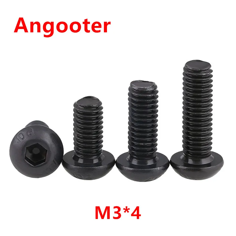 100 шт. ISO7380 M3 * 4 черная сталь 10,9 класс винты с круглой головкой M3x4 Шестигранная головная крышка винты болты
