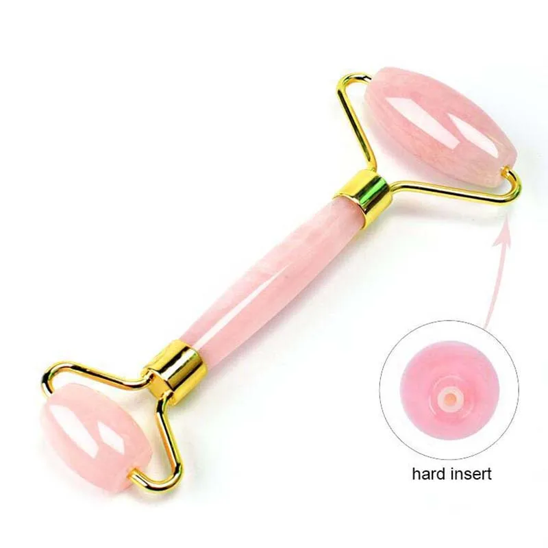 Розовый натуральный камень для лица нефритовый роликовый лицевой массажный подъемный инструмент для удаления морщин на шее тонкий уход за кожей GuaSha набор инструментов для здоровья SPA