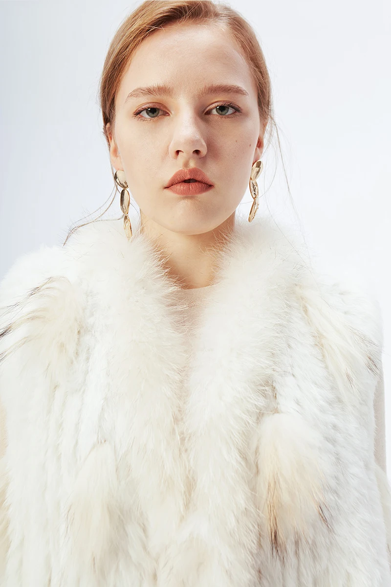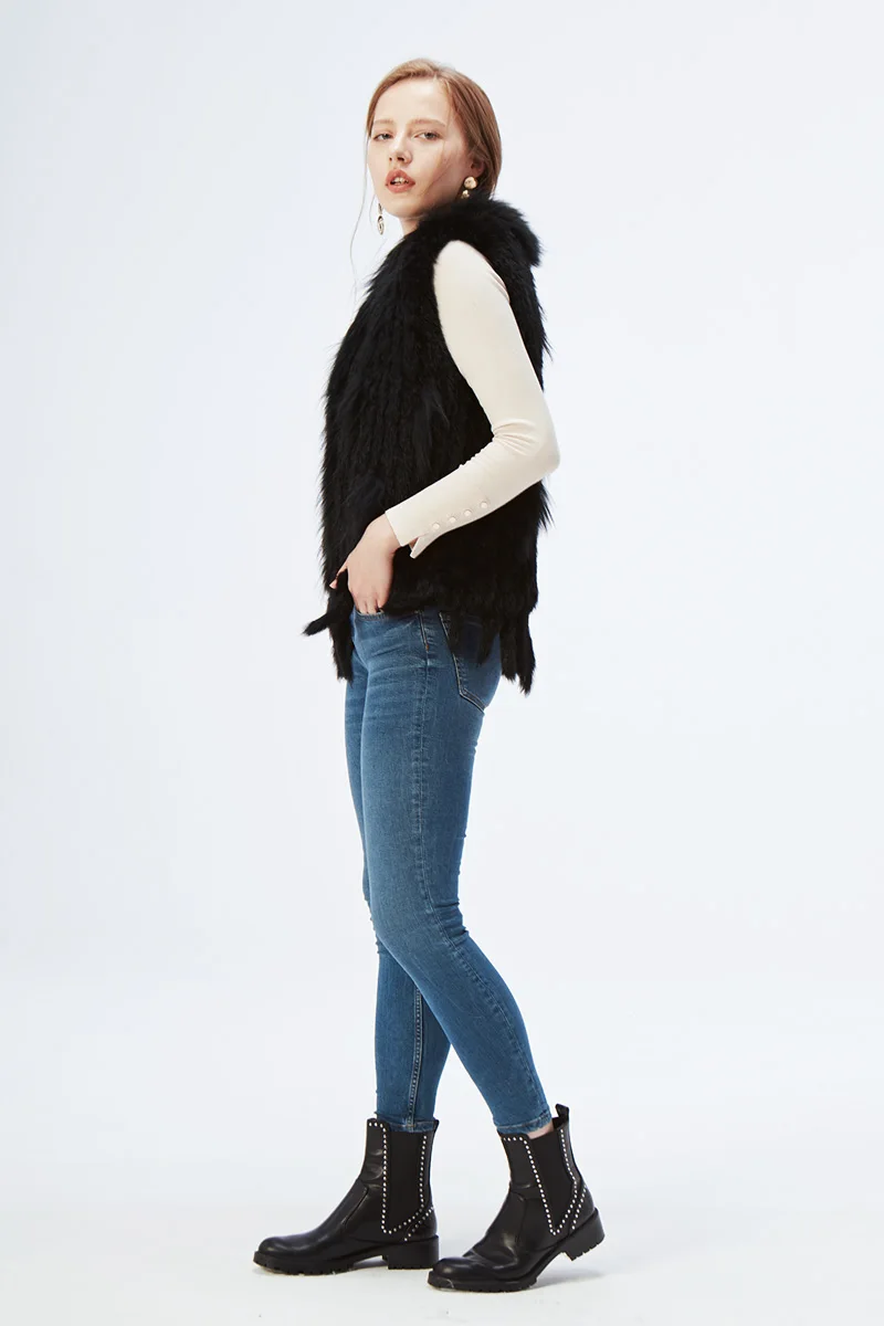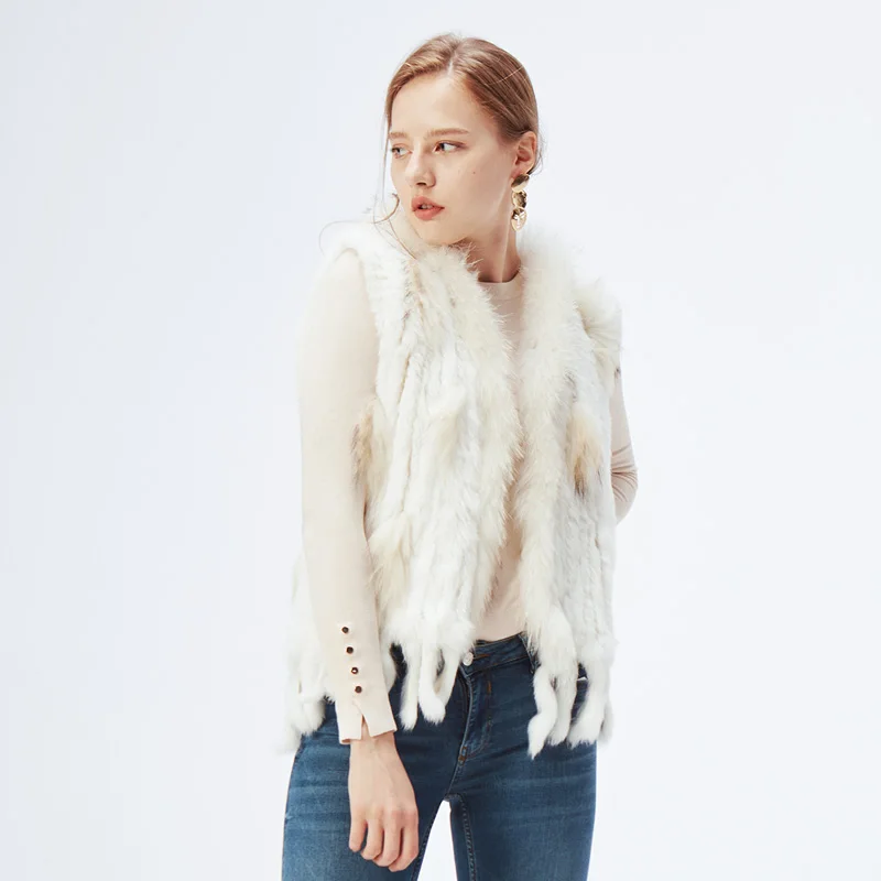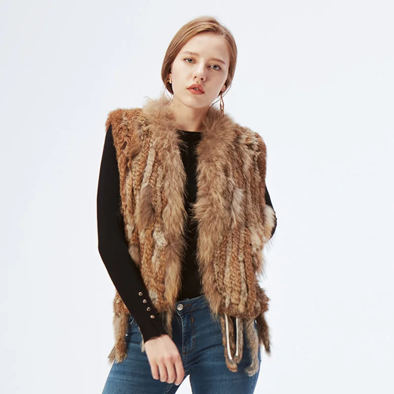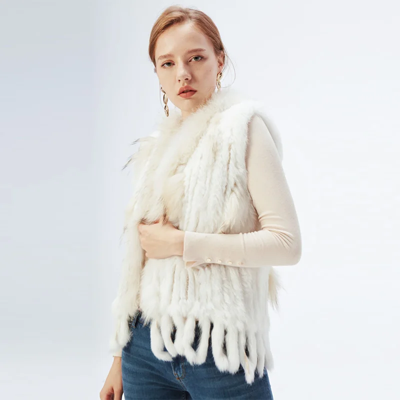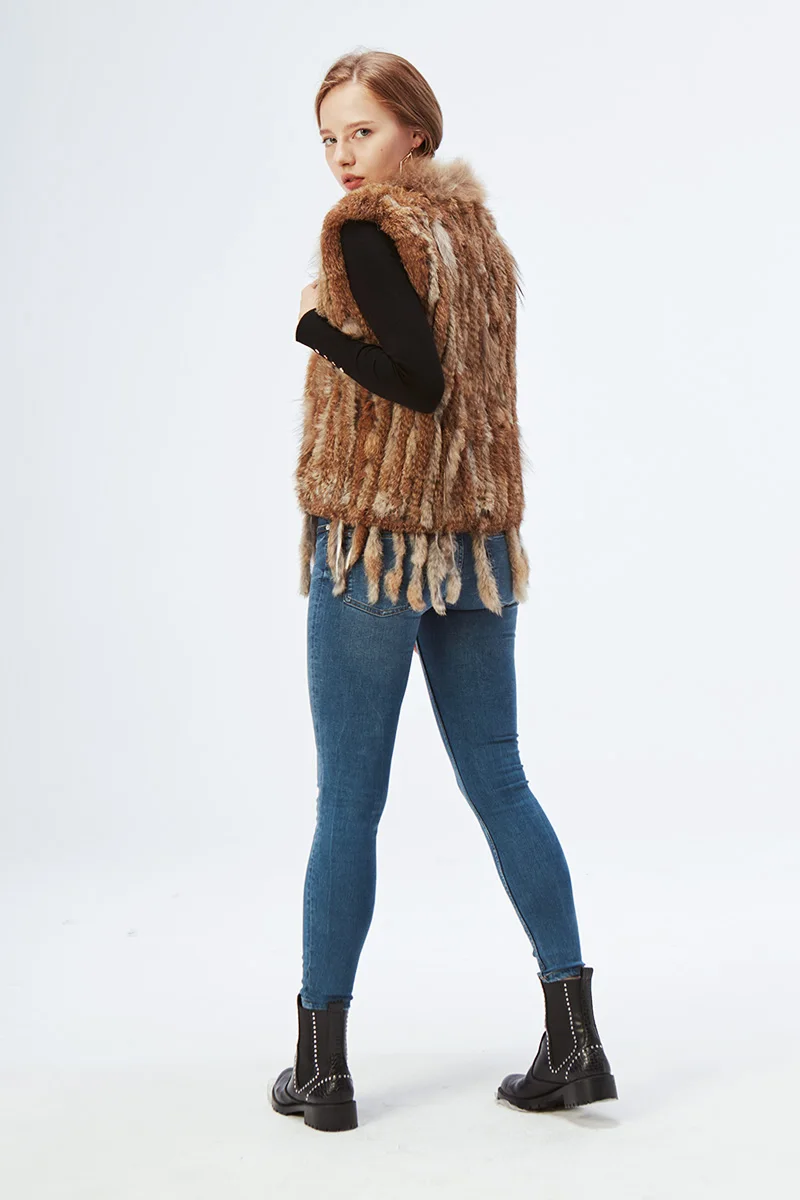 Жилет из натурального кроличьего меха ETHEL ANDERSON, жилет с кисточками и воротником из натурального меха енота, верхняя одежда