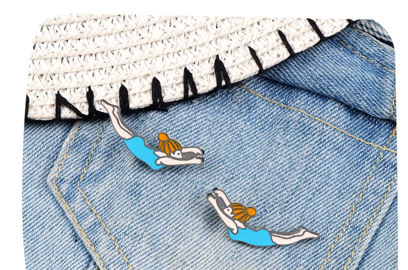 2 шт.компл. креативные эмалированные булавки, брошь в виде спортивного движения для плавания и девушки, застежка на спину, булавка на воротник куртки, значок, аксессуары для ювелирных изделий