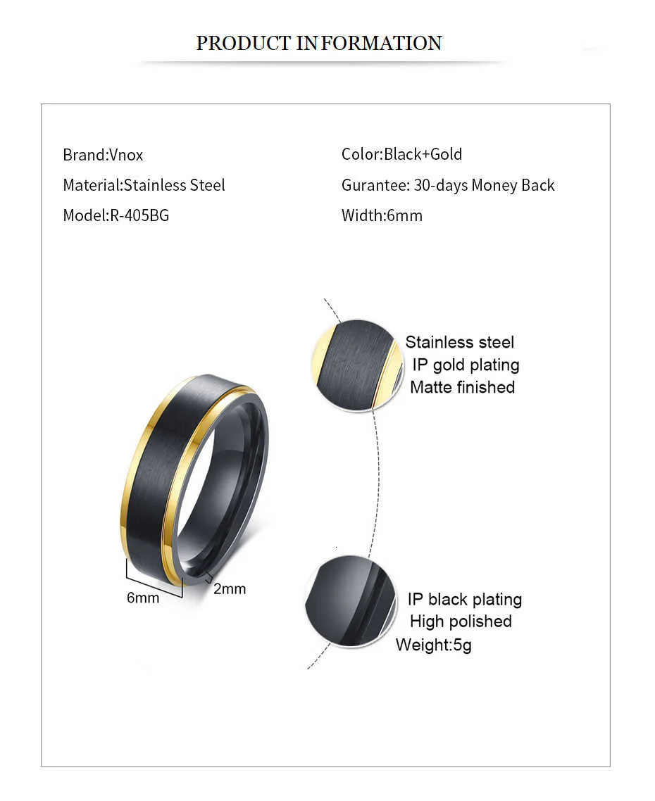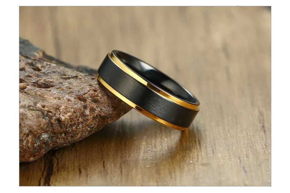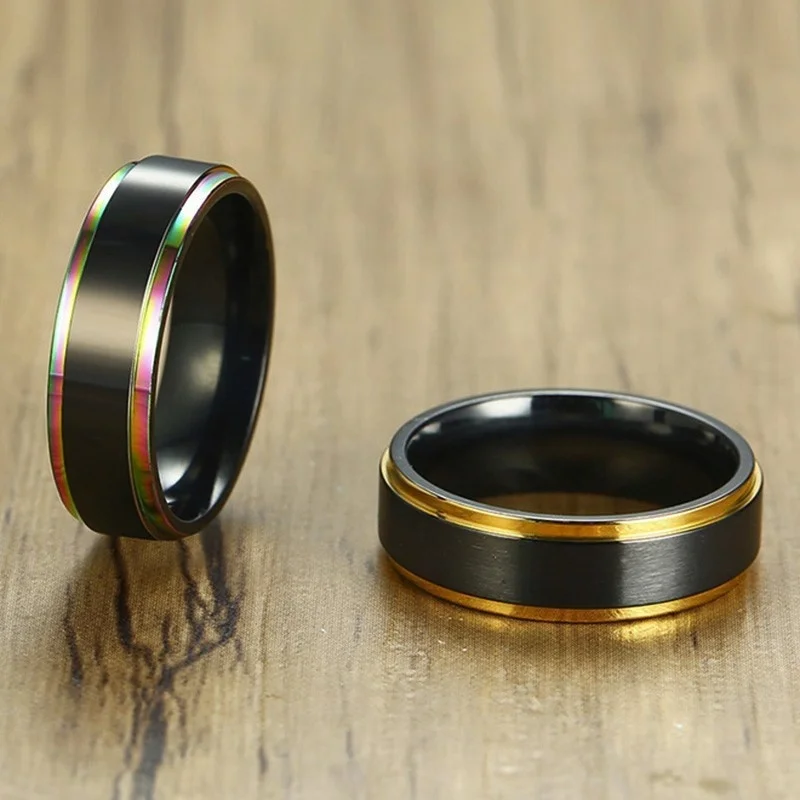 Кольцо Vnox с черным хвостом 6 мм для мужчин и женщин, уникальное кольцо с матовой поверхностью из нержавеющей стали с цветными линиями по краям
