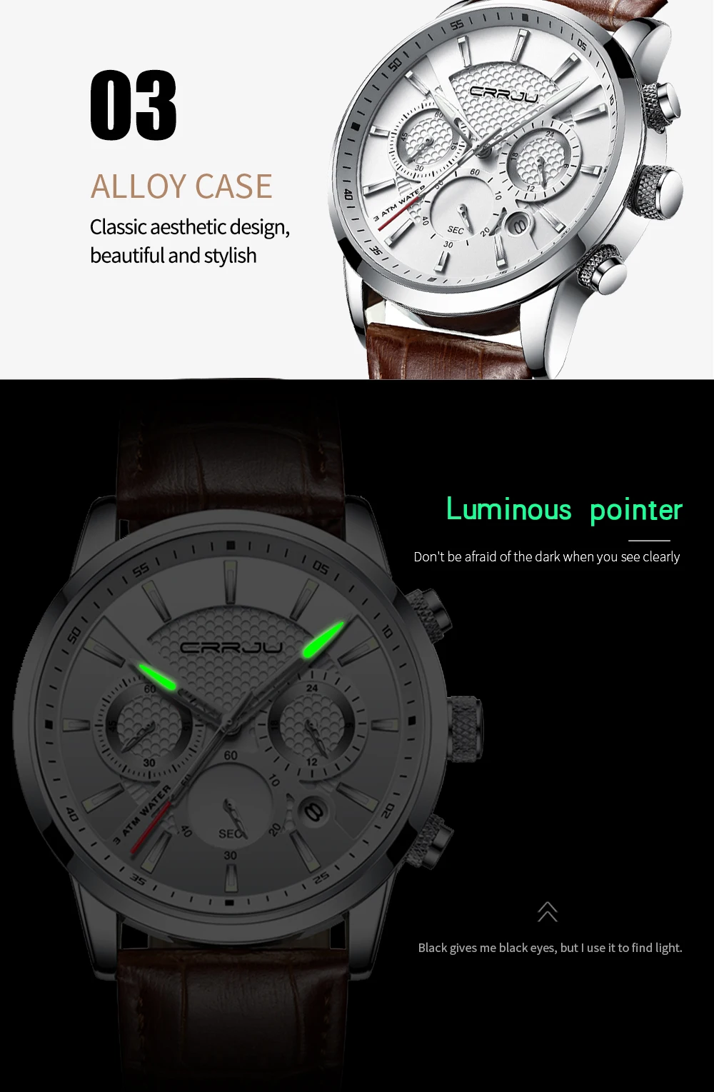 Кварцевые часы CRRJU новые роскошные мужские уличные мужские часы спортивные часы хронограф наручные часы кожаные Наручные часы