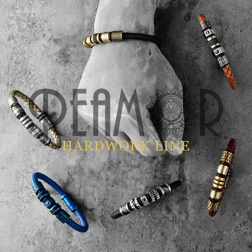 Плетеный браслет REAMOR из натуральной кожи, мужской браслет из нер...
