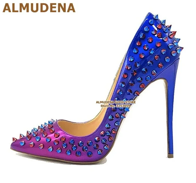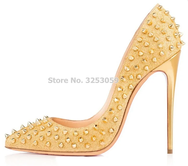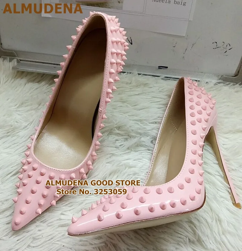 Недорогие новые женские туфли-лодочки ALMUDENA по низкой цене, распродажа, розовые, красные, золотые, телесные шипы, свадебные туфли на высоком каблуке 12 см