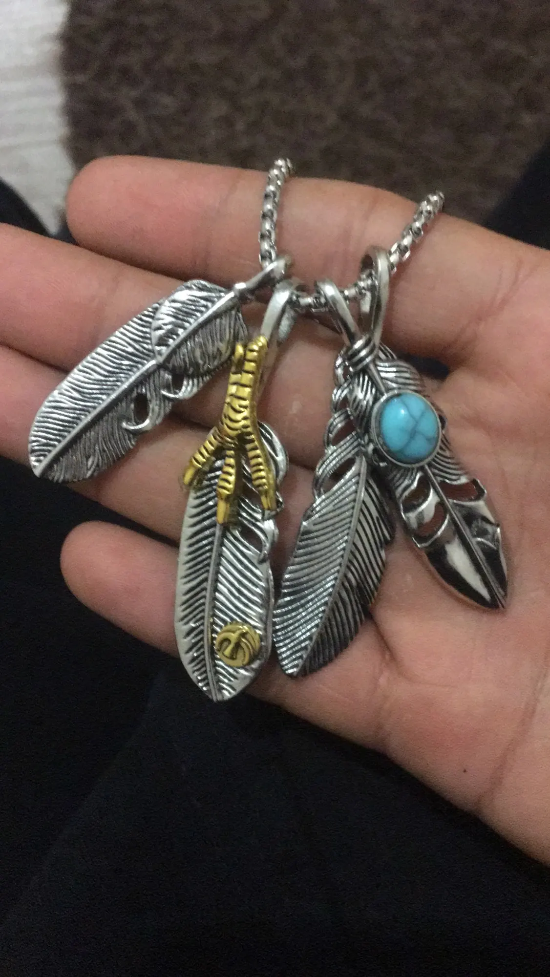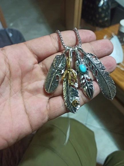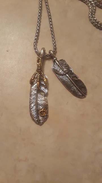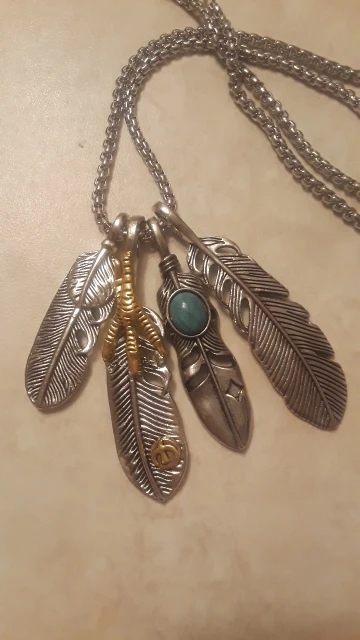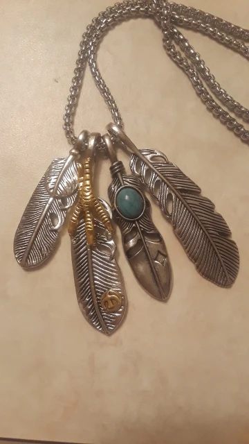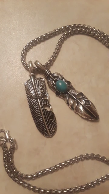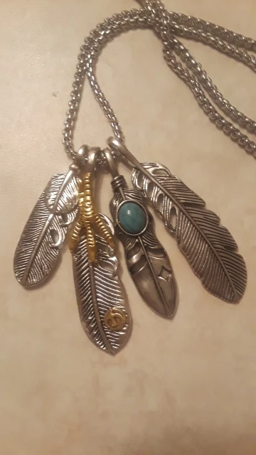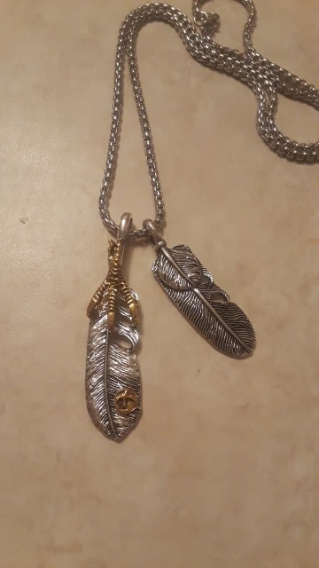 Хорошая подвеска, соответствует фото. Конечно, как и следовало ожидать, перья при ношении перекрывают друг друга, но это не так важно. Цепочка вроде добротная.