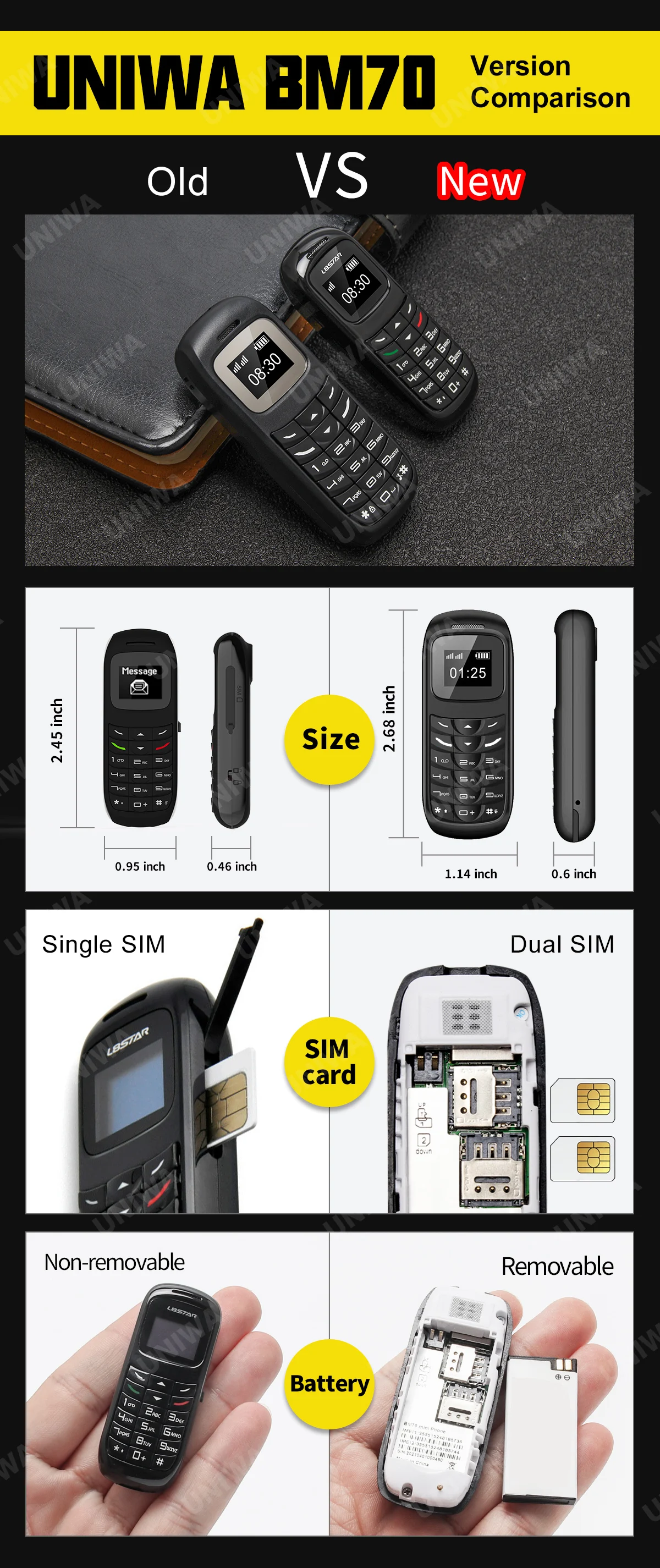 UNIWA BM70 DUOS мини мобильный телефон беспроводные Bluetooth наушники мобильный телефон Стерео GSM супер тонкий GSM маленький телефон