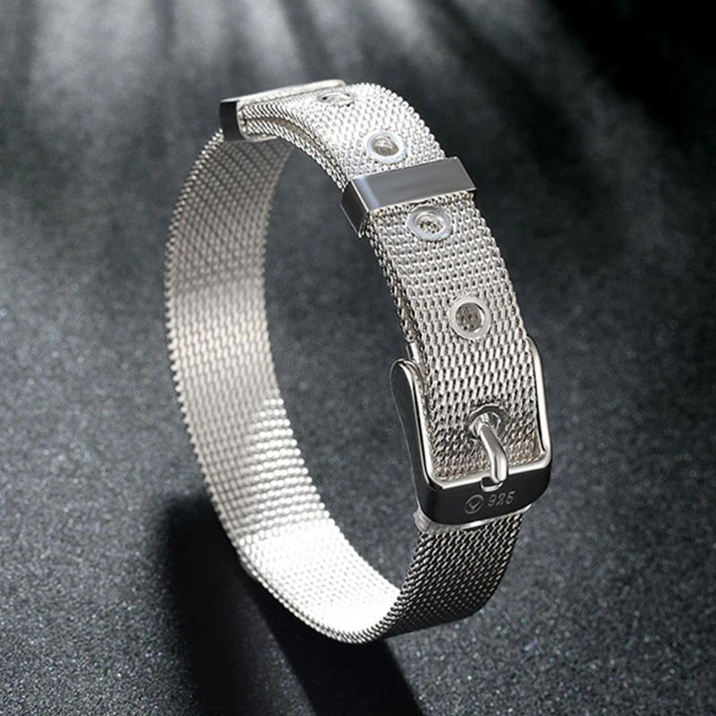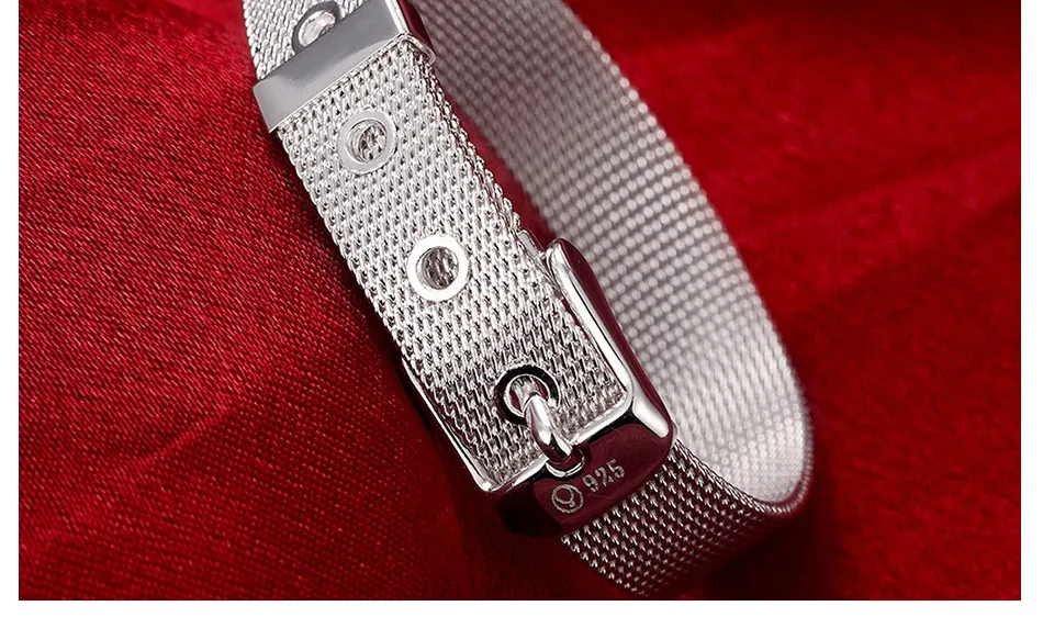 Серебро 925 ювелирные изделия модный сетчатый ремень браслет и браслет для женщин и мужчин высокое качество браслеты серебряные ювелирные изделия