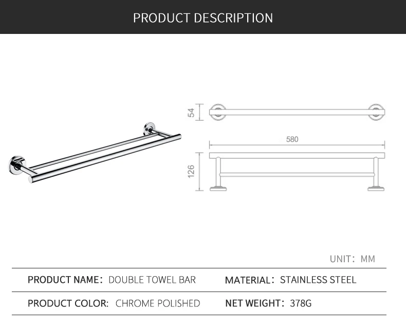 Аксессуары для ванной комнаты из нержавеющей стали SUS 304Весь металл: изготовлен из нержавеющей стали, обеспечивая качество и долговечность.Технические характеристики-Материал: нержавеющая сталь 304-Отделка: зеркальное покрытие-Способ установки: настенный