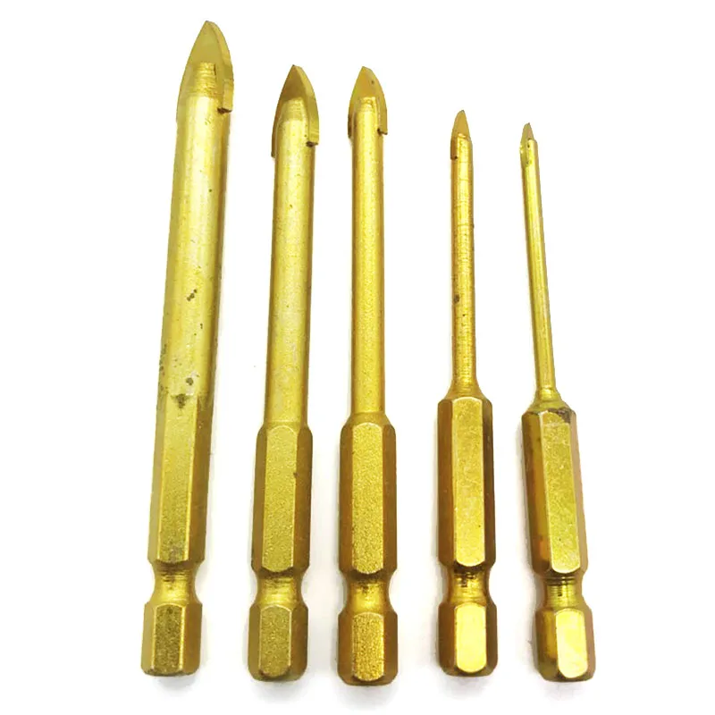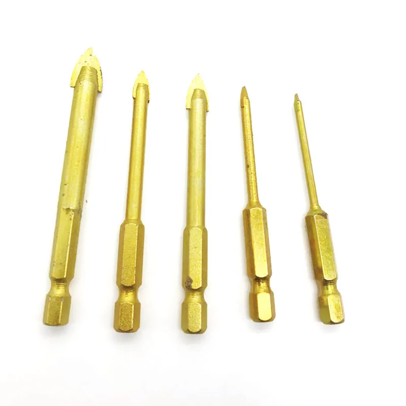 Набор сверл с титановым покрытием, шестигранное по стеклу, плитке, 5 шт.лот