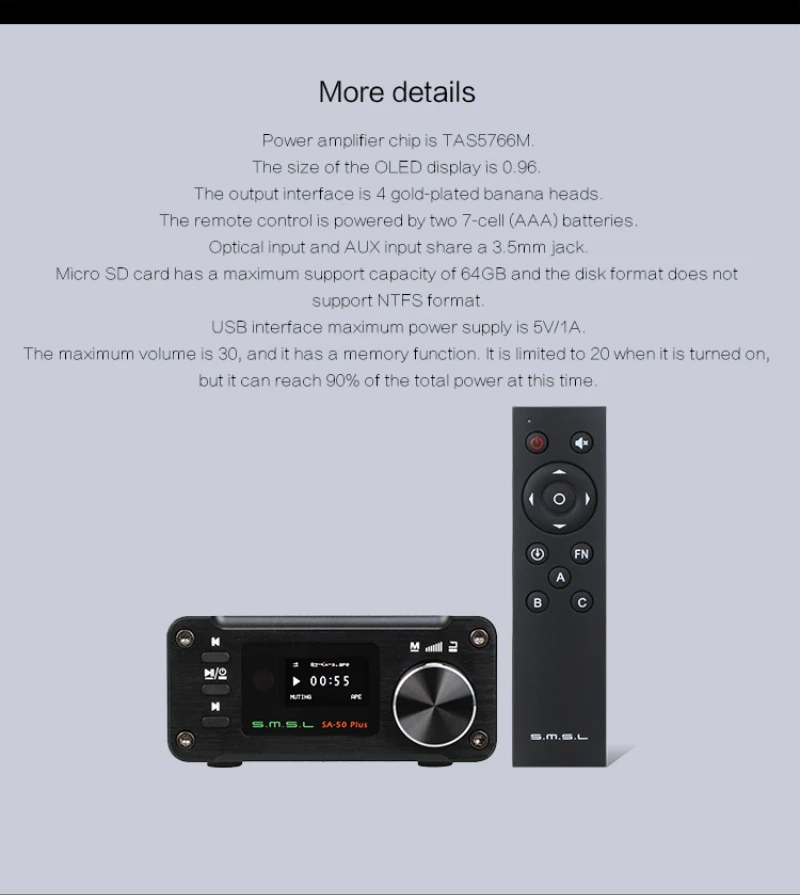 SMSL SA-50 Plus не может справиться с 24/96 flac: искажение, шипение и потеря данных. 16/44 flac звук лучше, но все еще потеря данных: иногда кажется, что мои 50 лет поцарапаны записей.