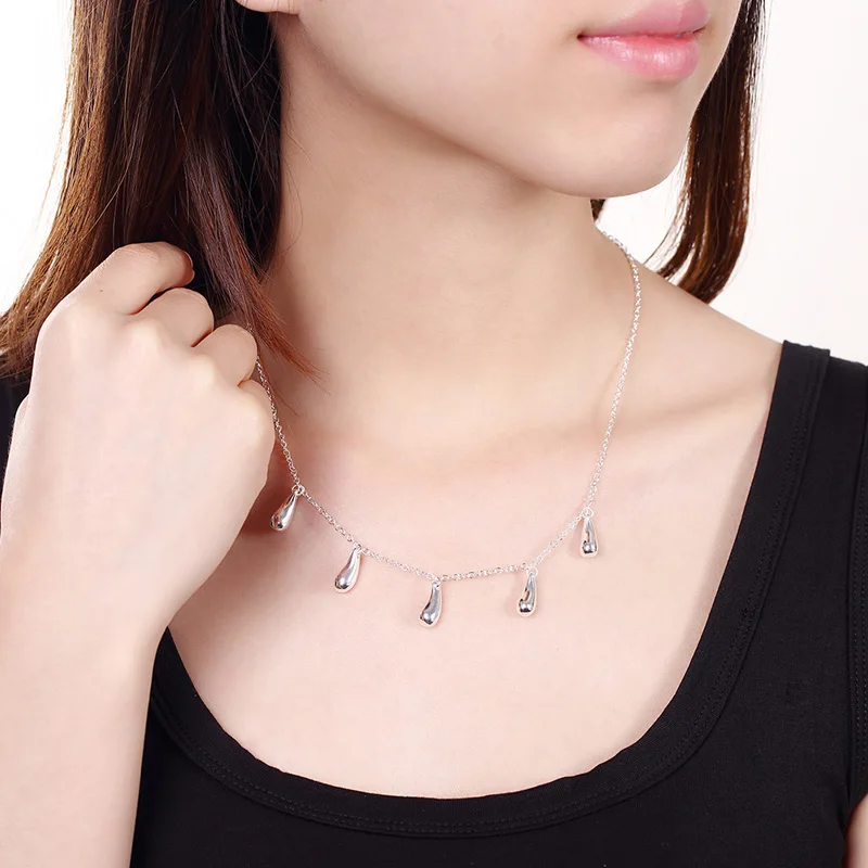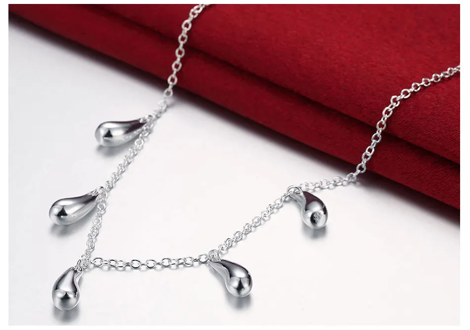 925 Серебряная цепочка Капля воды ожерелье для женщин серебряные ожерелья