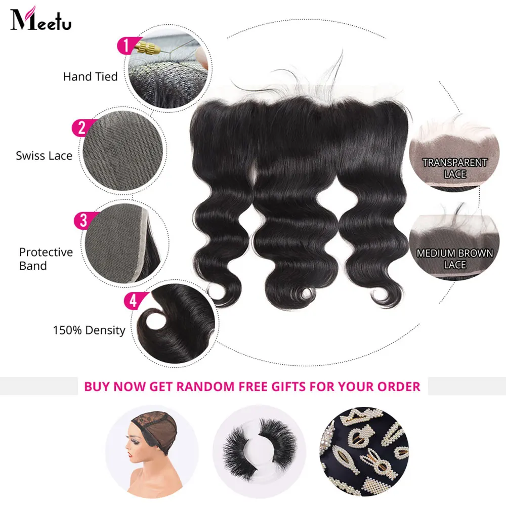 Meetu волнистые пряди с HD прозрачной кружевной фронтальной 13x4 че...