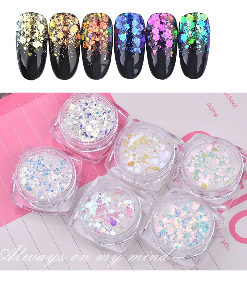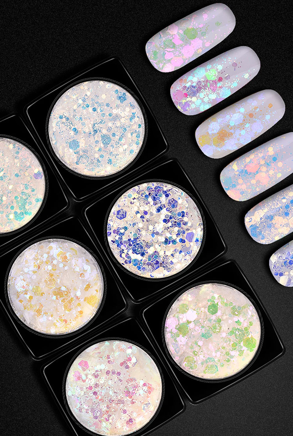 Блестки смешанные, "Aurora", переливающиеся, шестиугольные, для нейл-арта, радуга, смола, эпоксидная смола, подарок, рождественские украшения, украшения, 6 коробок
