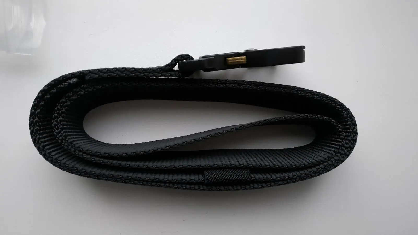 Товар прибыл быстро, согласно заказу (черный, 125 см.) все края прошиты и обработаны, материал качественный. Застёжка работает хорошо, на фото видно длинны хватает за глаза.