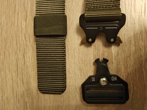 Ремень качественный, но цвет больше золотой, чем хакки, не понравился блеск материала.
