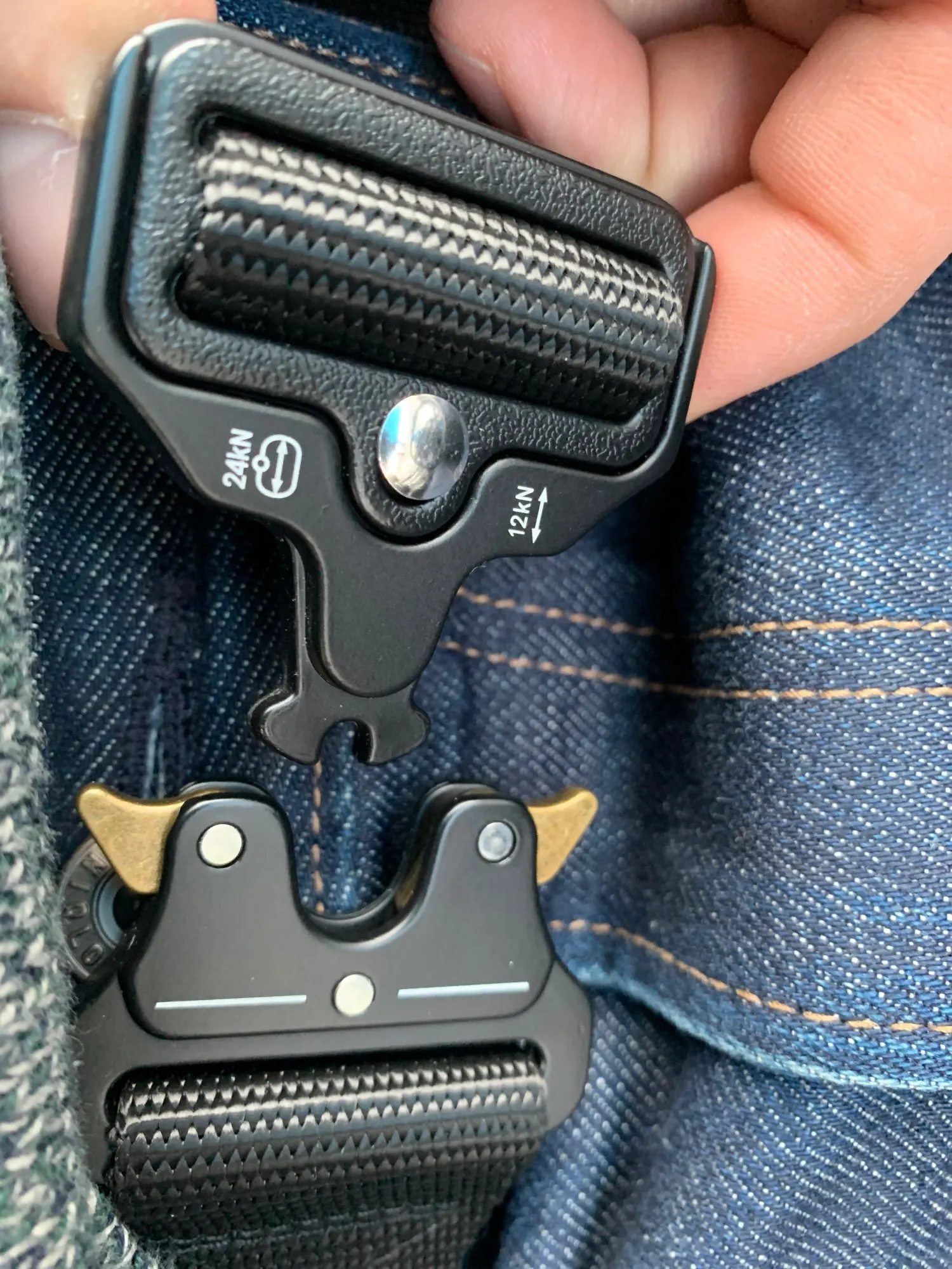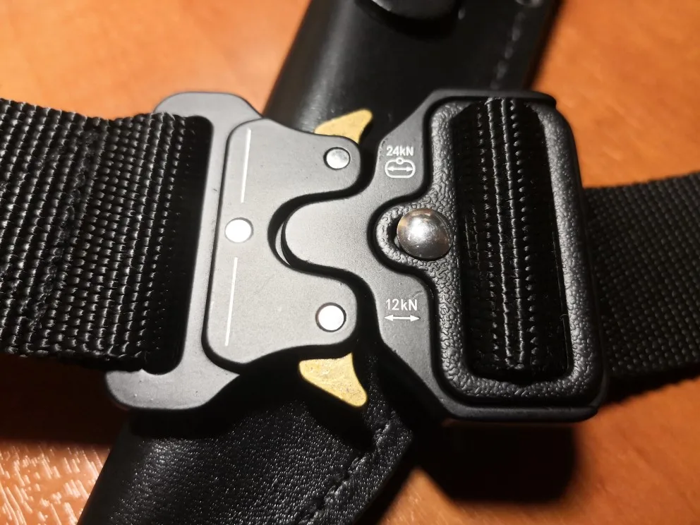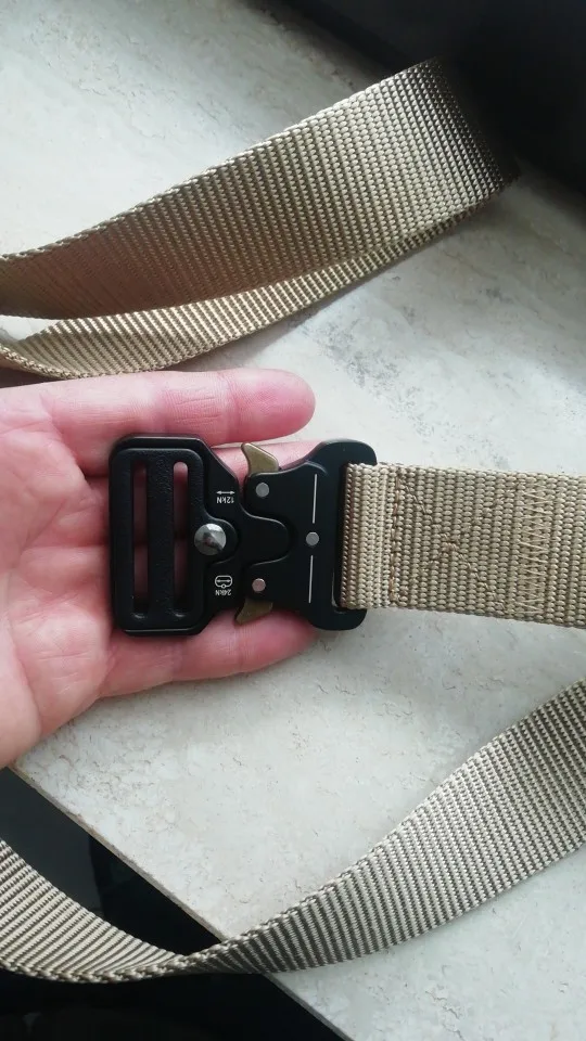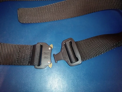 Качество ремня среднее, обычный нейлон, а вот пряжка шикарная, механизм крайне удобный и надёжный