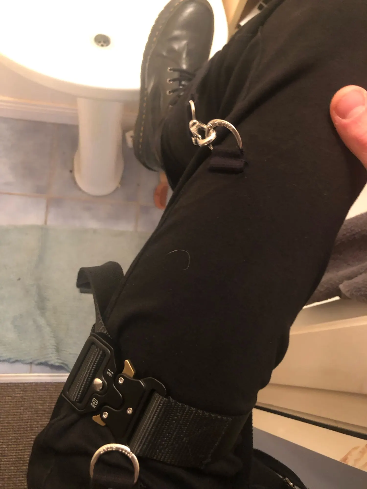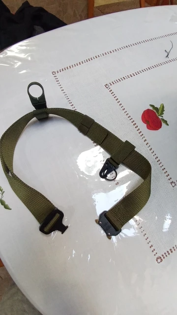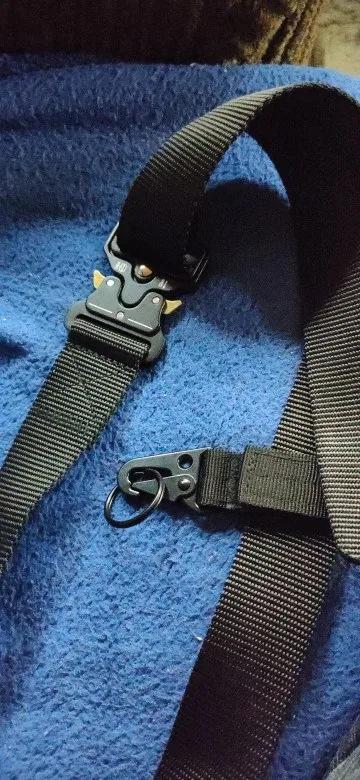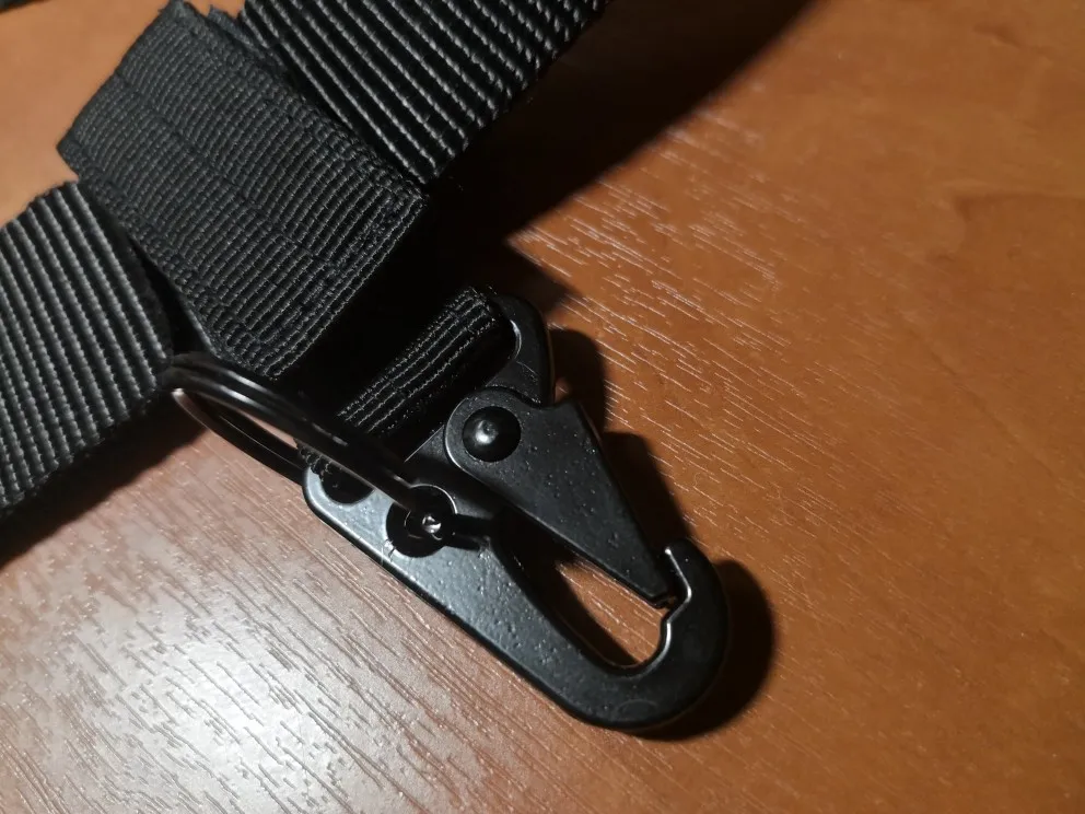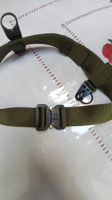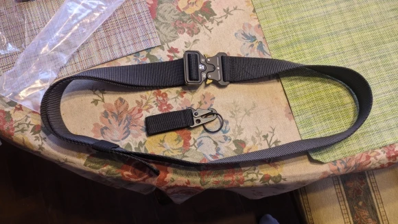 Хороший ремень. Застежка удобная. Держит крепко и быстро отстегивается. И удобные петли для ключей и бутылки. Хочешь подсоединяй, хочешь нет.