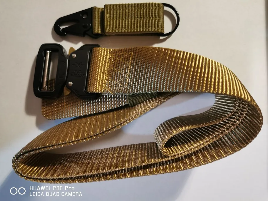 Всем привет. Товар отличный, качество на высоте. Нейлон толстый, пряжка металлическая, окрашена достойно, тяжёлая.... Механизм работает чётко, швы прошиты качественно. Брал 11.11 с купоном Алика обошелся в 331 рубль, в принципе халява. Тренчики под ключи и бутылку заказывать в комплекте не стал. По фоткам они из серии самых дешёвых. За 250 руб. заказал у другого продавца комплект, с липучкой плюс клепка, так намного надежнее, придёт заказ отпишусь. До Нижнего Новгорода за 20 дней, Норм! Да, заказывал 125 см, сам вешу 83кг, запас по длине остался охрененный. на размер брюк XL-2XL самое оно то. Продавца и товар рекомендую.