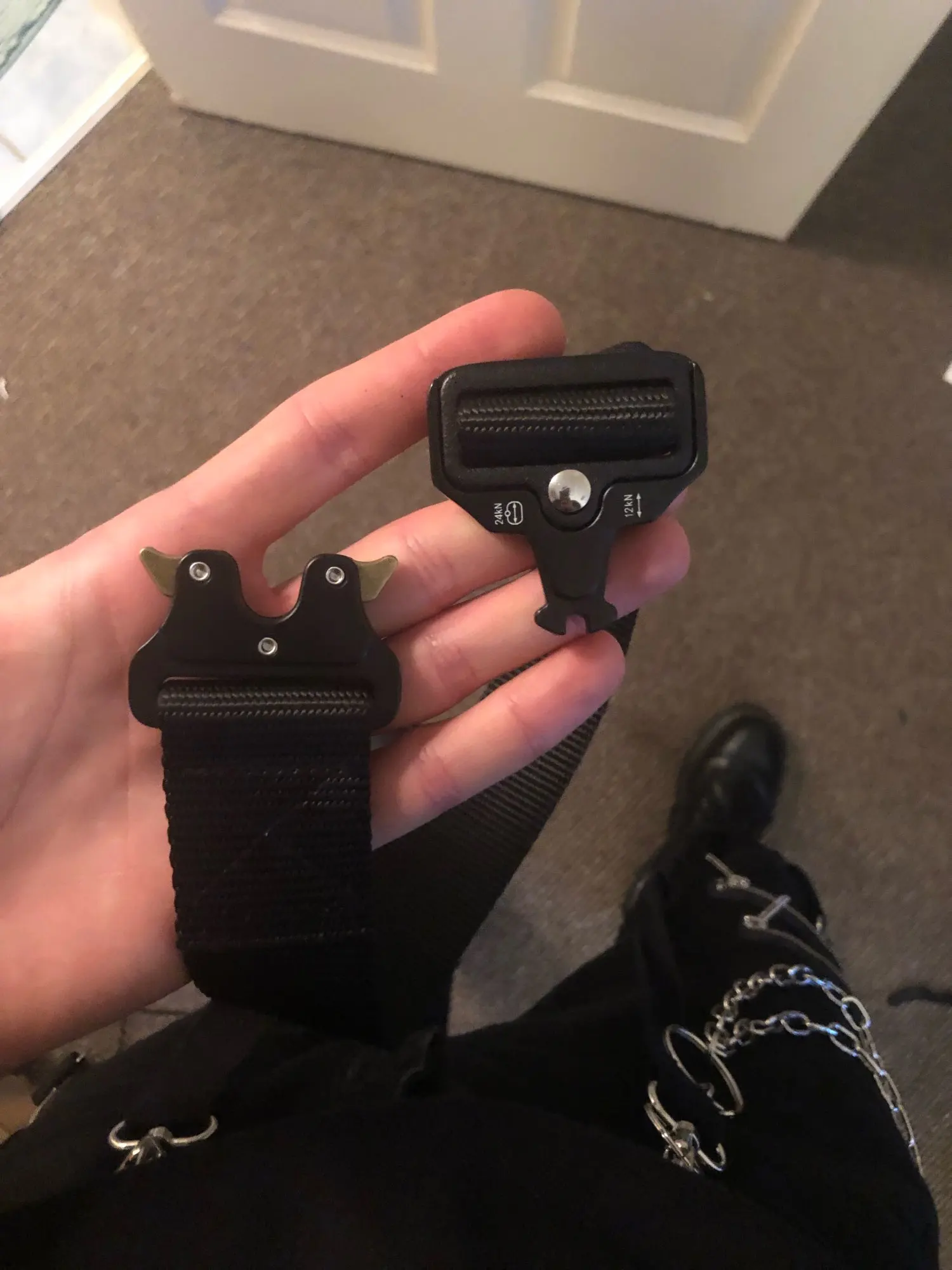 Как на фото. Пряжка весит металлические детали и хорошего качества. Все отлично. Грубая доставка, в течение 6 дней дома из Китая и заказ 11/11!
