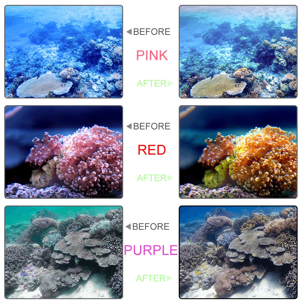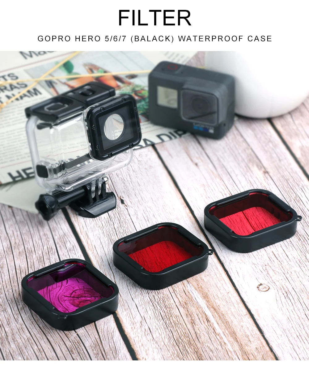 Супертонкие водонепроницаемые фильтры, 3 шт., красный, розовый, фиолетовый, набор фильтров для подводного плавания для Gopro Hero 567, черный, оригинальный корпус, чехол