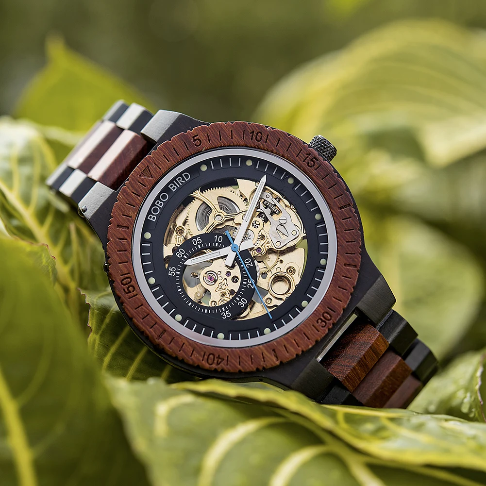 Механические часы BOBO BIRD, мужские деревянные Автоматические наручные часы, модные часы с светящимися стрелками, деревянная Подарочная коробка на заказ, мужские часы