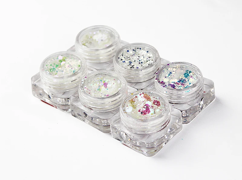 Радуга ослепительное блестящее микс, 6 шт./компл. 6 видов цветов для УФ гель лак для ногтей с блестками Прозрачный Русалка эффект Аврора блестки конфетти